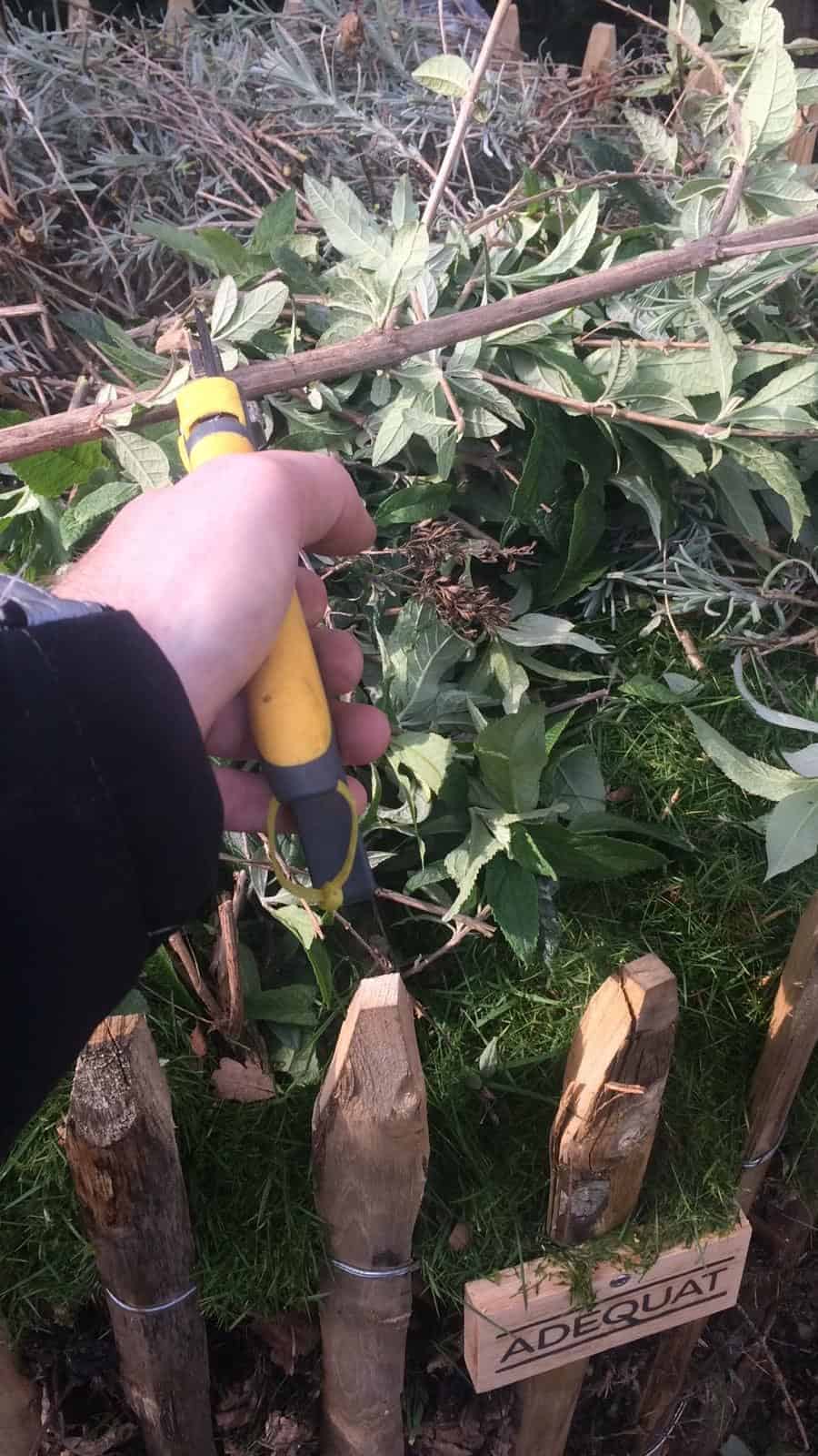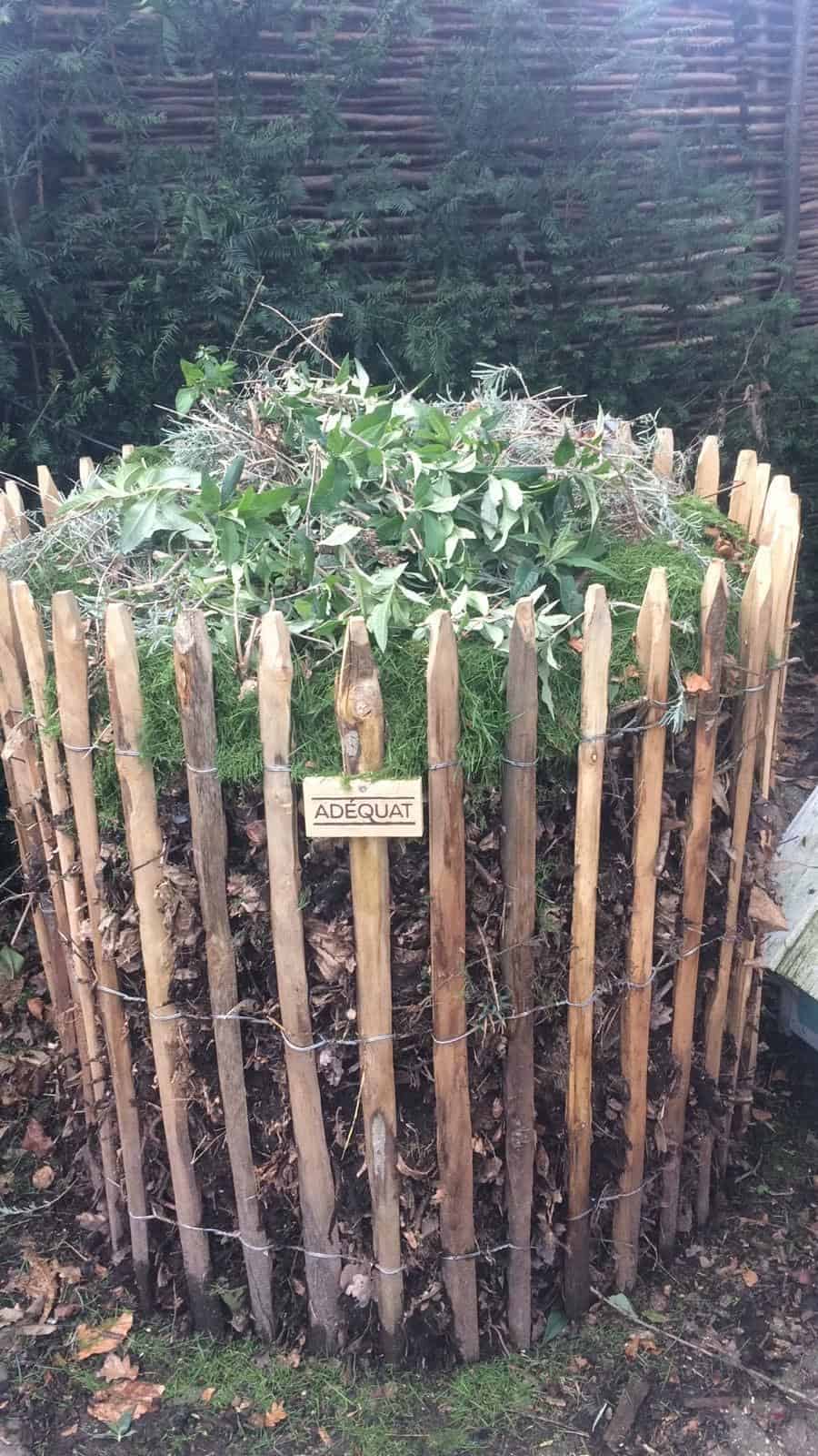 Für extra Grün können Sie Kletterpflanzen oder einheimische Sträucher entlang der Totholzhecke pflanzen, wie Wilder Geißblatt, Lathyrus, Waldrebe oder Wilde Wicke.