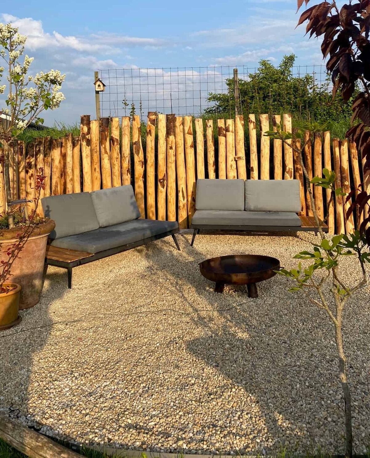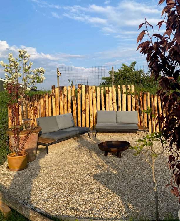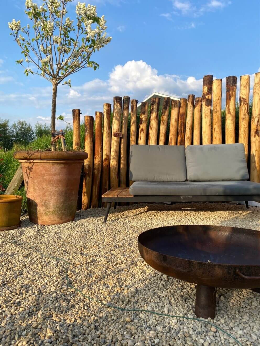 Damit die Feuerstelle zu einer richtig gemütlichen Ecke in Ihrem Garten wird, empfehlen wir einen Sichtschutz an mindestens einer Seite, oder bei einer Ecke an zwei Seiten. Sie können selbst einen schönen Sichtschutz aus Kastanienpfählen oder Robinienpfählen bauen oder unsere fertigen Sichtschutzelemente aus Holz verwenden.