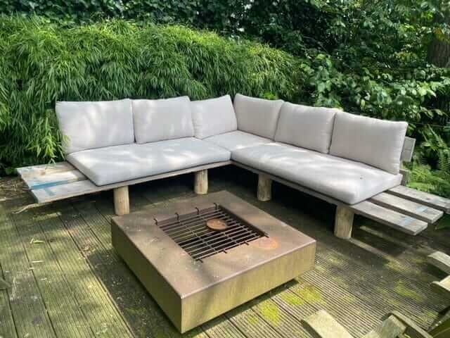 Gestalten Sie dann gemütliche Sitzgelegenheiten, entweder eine selbst gebaute Bank, z.B. aus langlebigen Kastanienholzbrettern oder gemütliche Gartensessel.