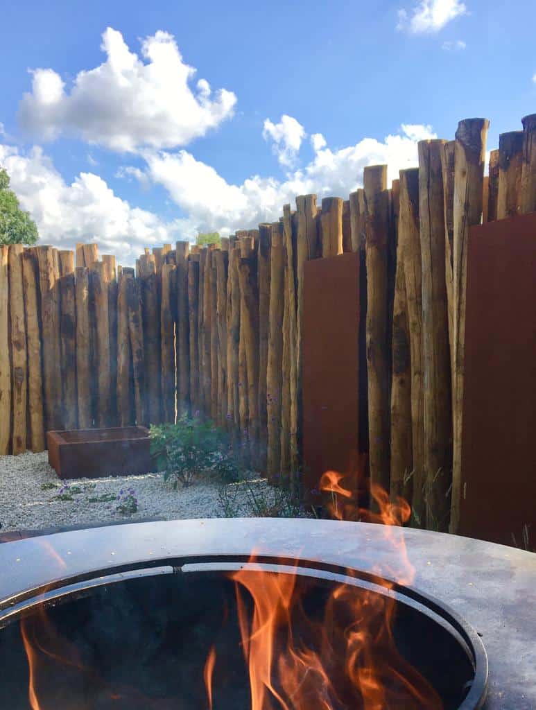 Ein Sichtschutz macht die Feuerstelle im Garten noch gemütlicher. Fern der Blicke der Nachbarn können Sie entspannte Stunden im Garten mit Lagerfeuer-Stimmung genießen.