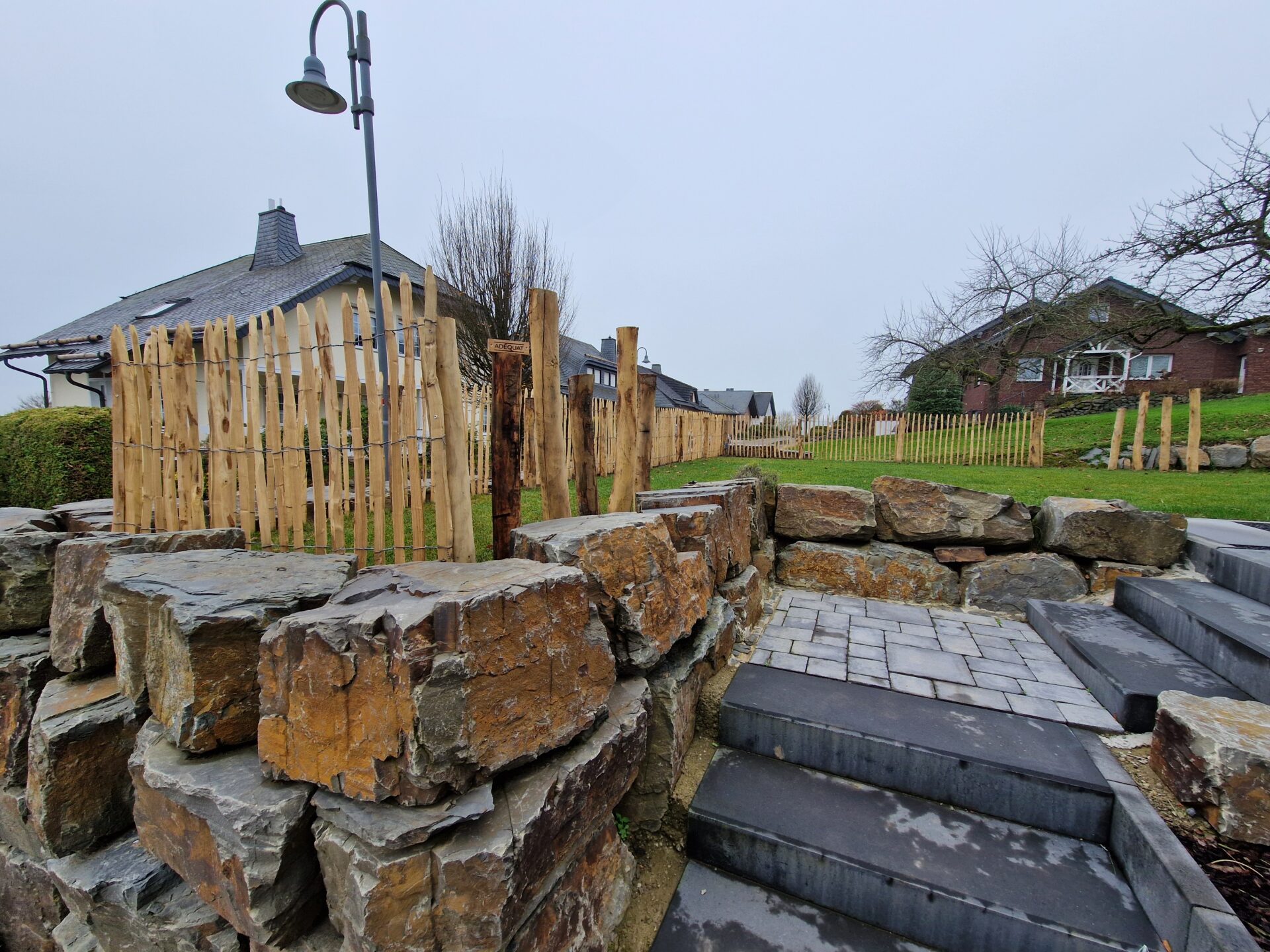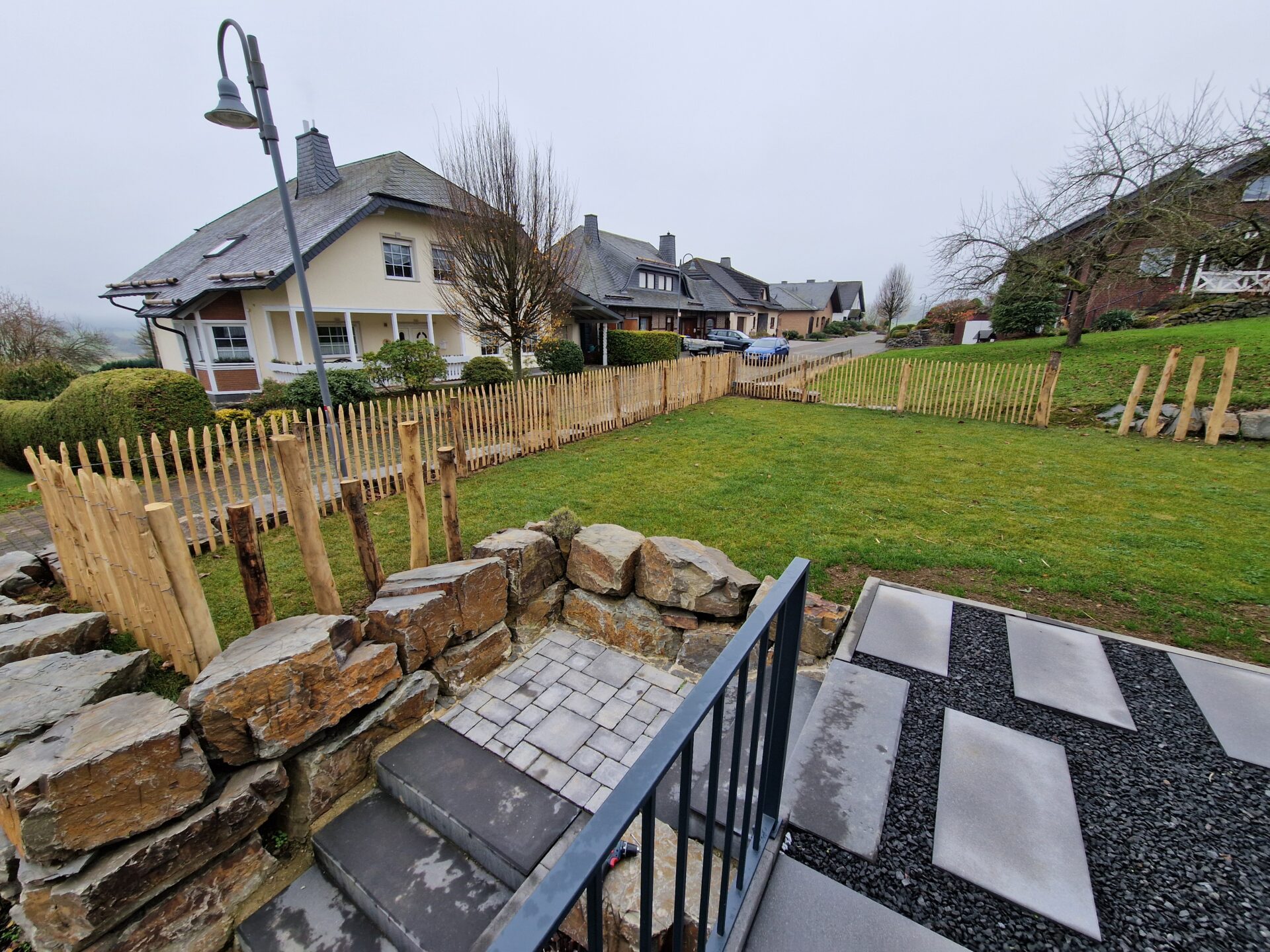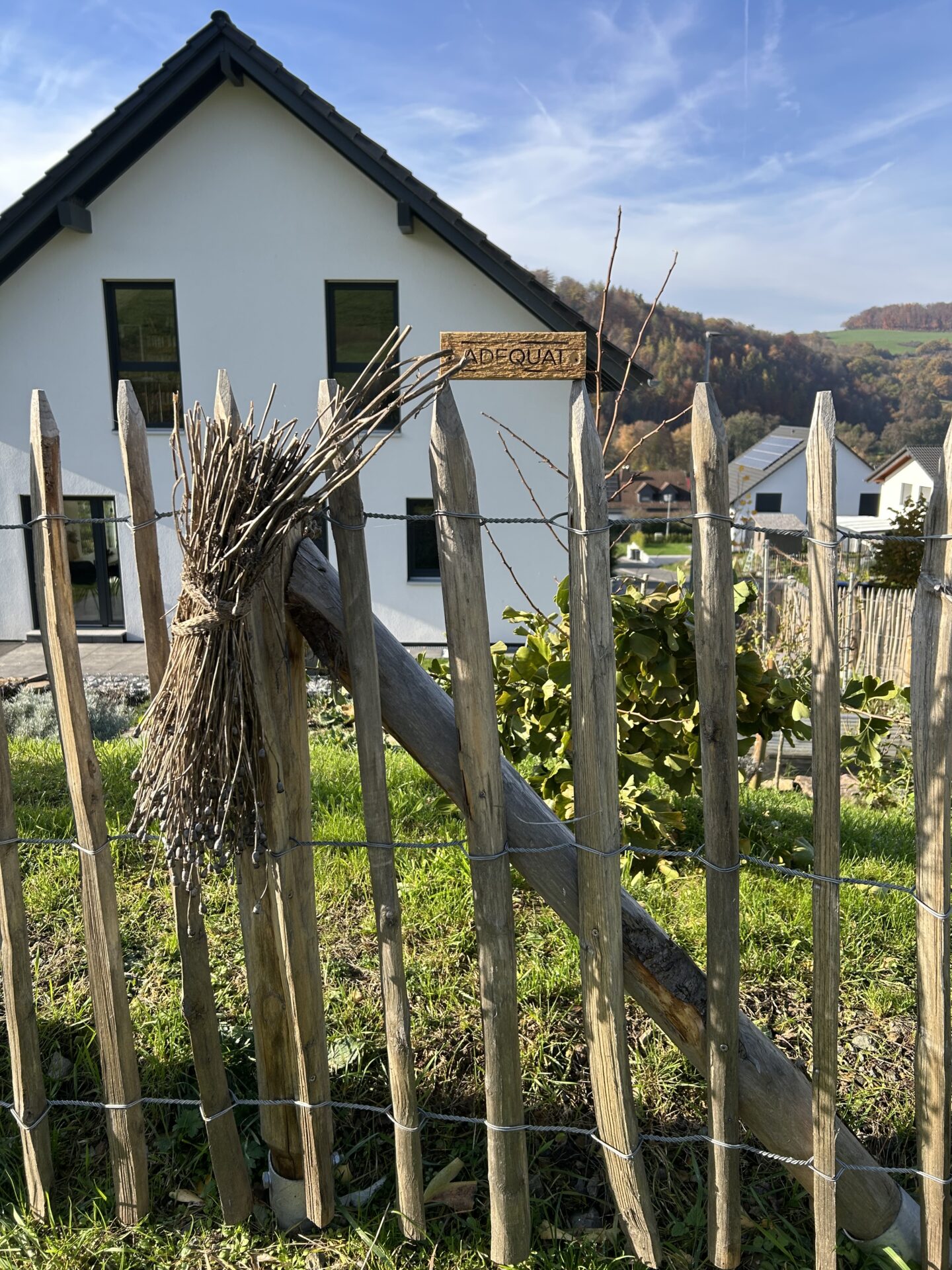 Im Naturpark Nassau im Mittelgebirge Westerwald (Rheinland-Pfalz) hat Anke das große Glück, ein naturnahes Grundstück in Hanglage zu bewohnen. Dort, wo einmal Wiese war, schuf Anke einen wunderschönen, großen Garten. Nachdem sie schon einmal einen 100 cm hohen Staketenzaun aus Edelkastanie bei Adéquat bestellt hatte, entschied sie sich für die Vergrößerung ihres Gartens nochmal für eine Lieferung von Adéquat.