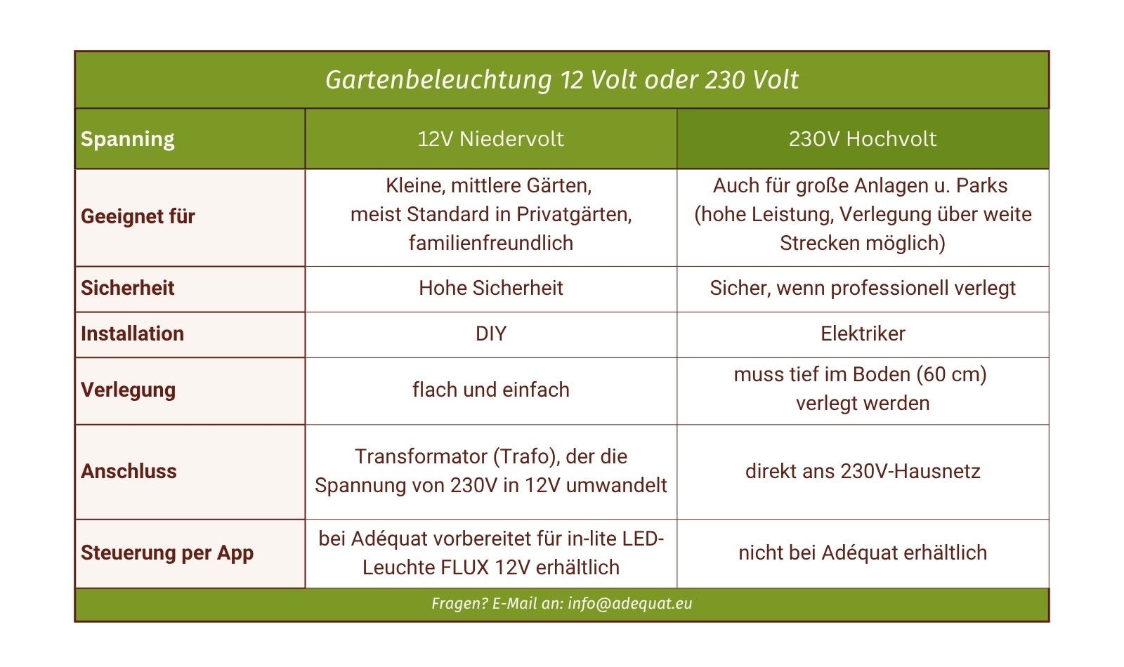 Was ist für die Gartenbeleuchtung besser, 12V oder 230V ?