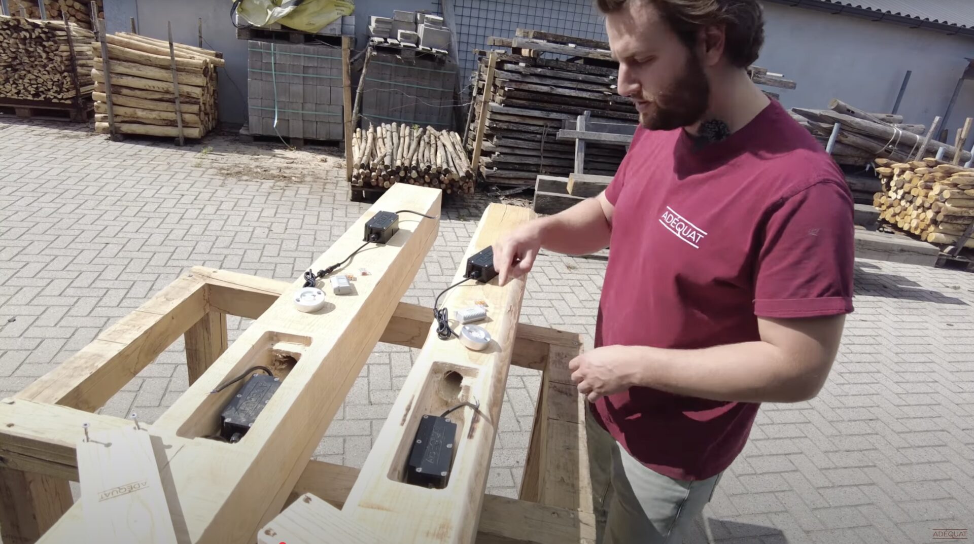 Passend zu unseren Holzleuchten finden Sie im Sortiment auch Außensteckdosen von Adéquat.