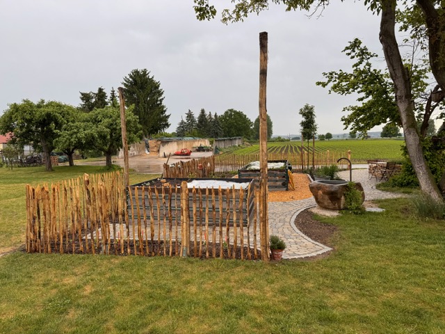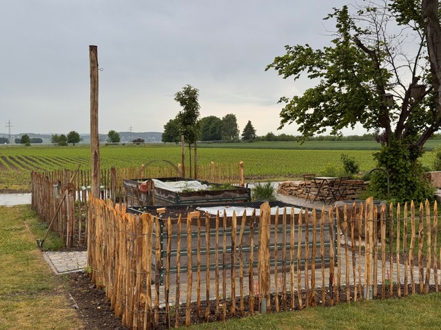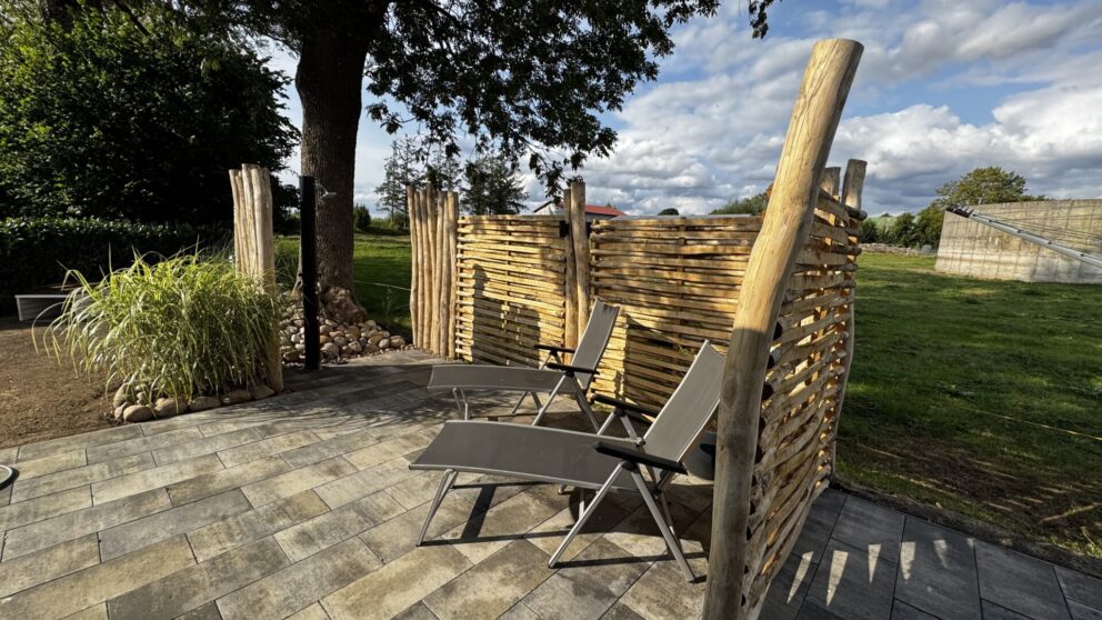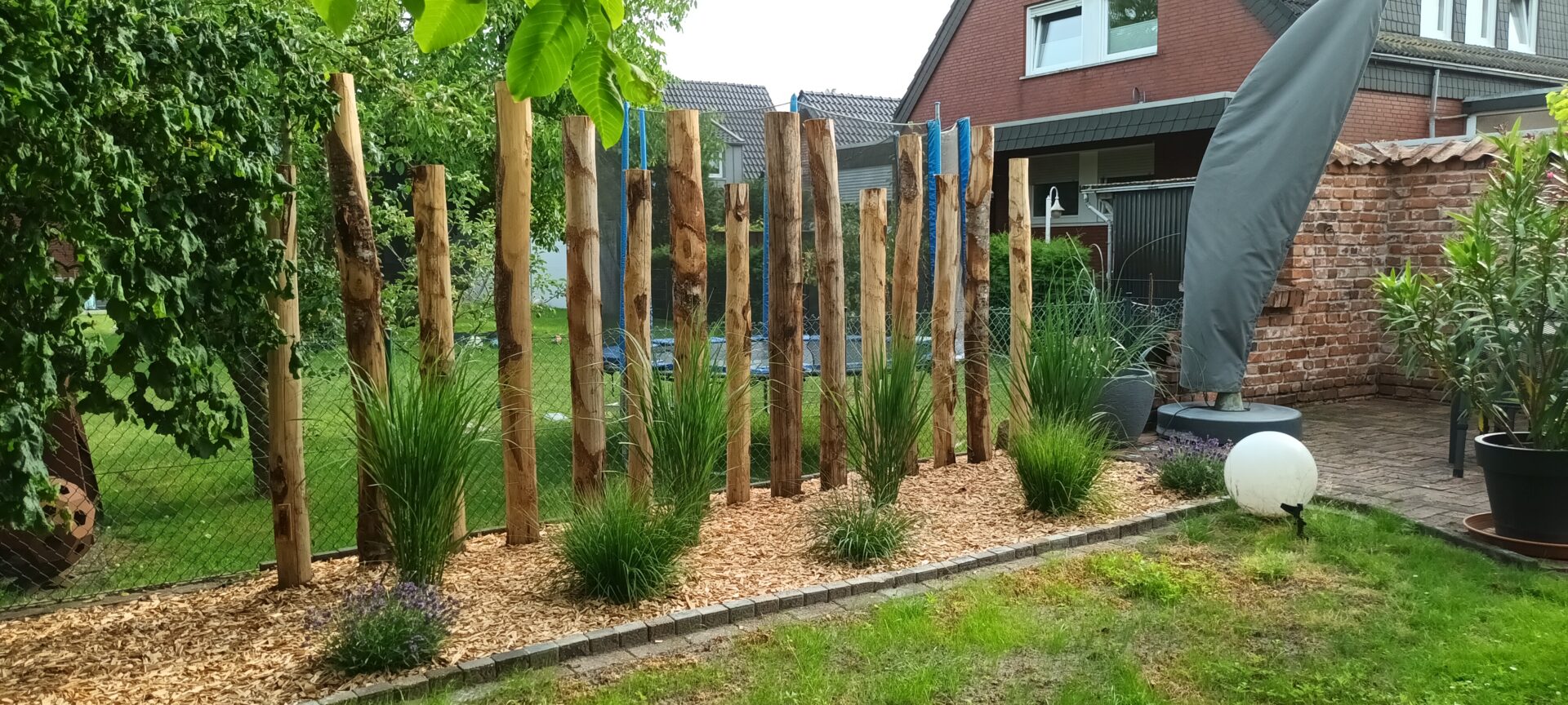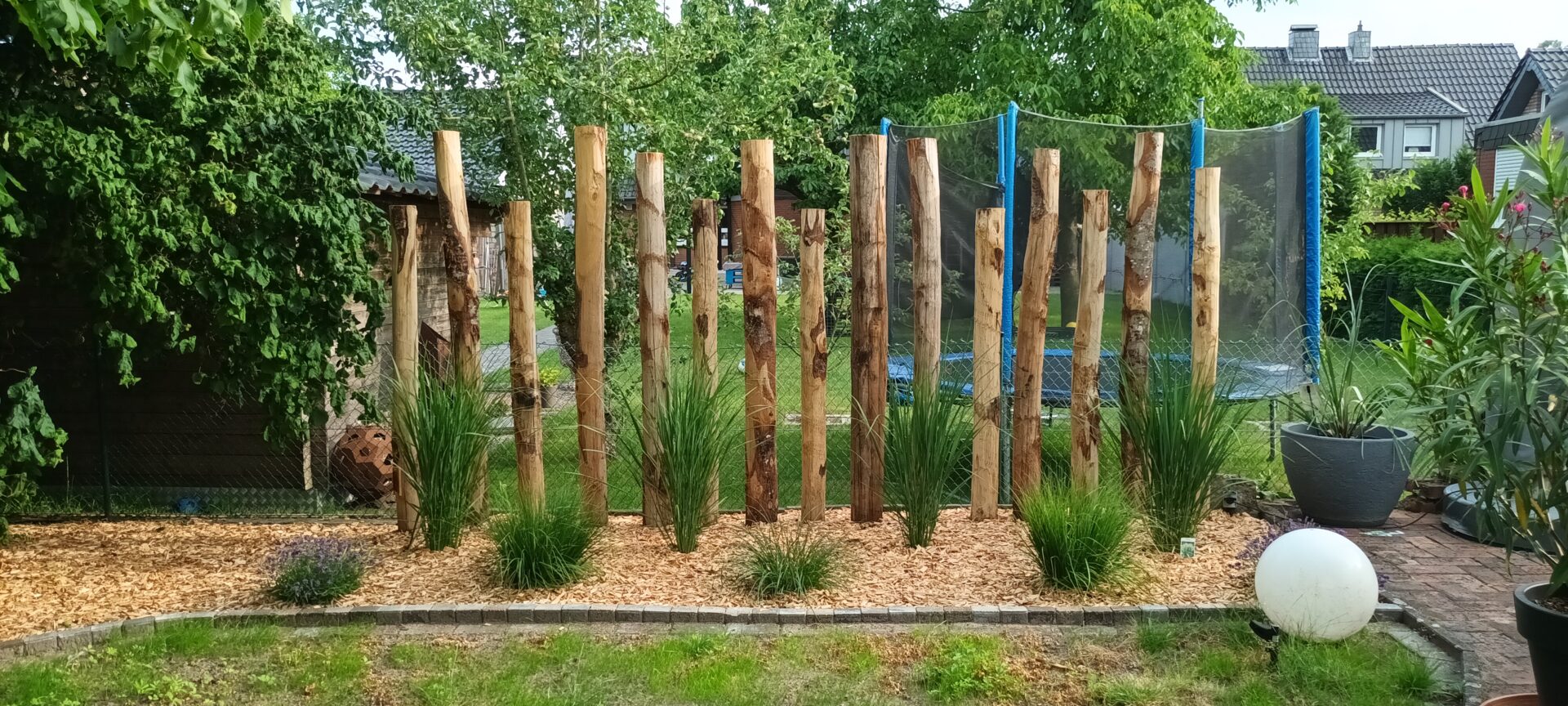 Als Sichtschutz hat er Robinienpfähle gewählt.