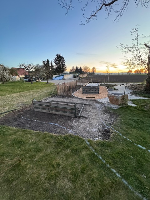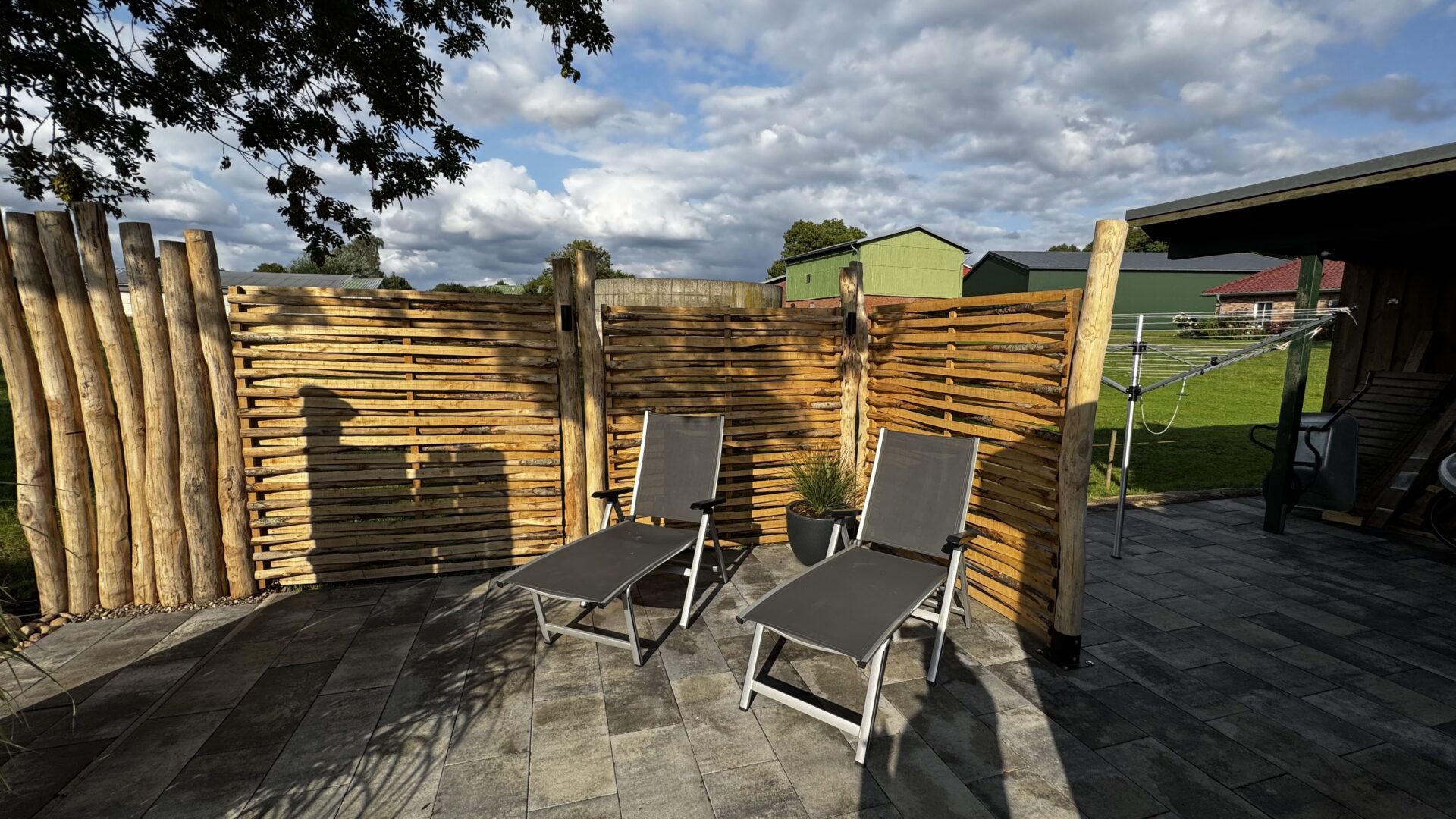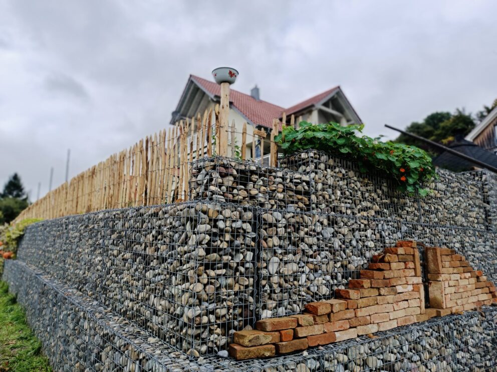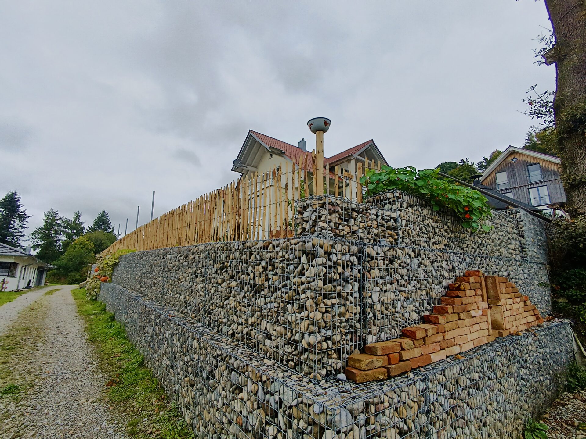 Als Sichtschutz hat er Robinienpfähle gewählt.