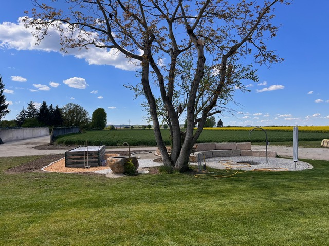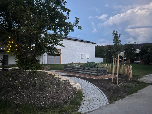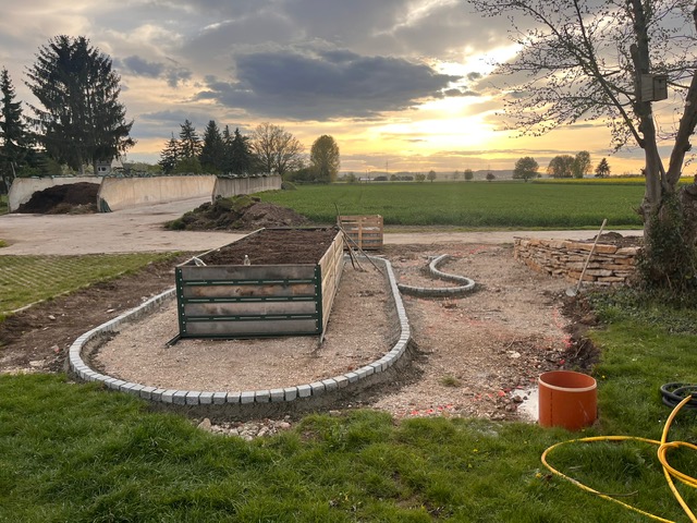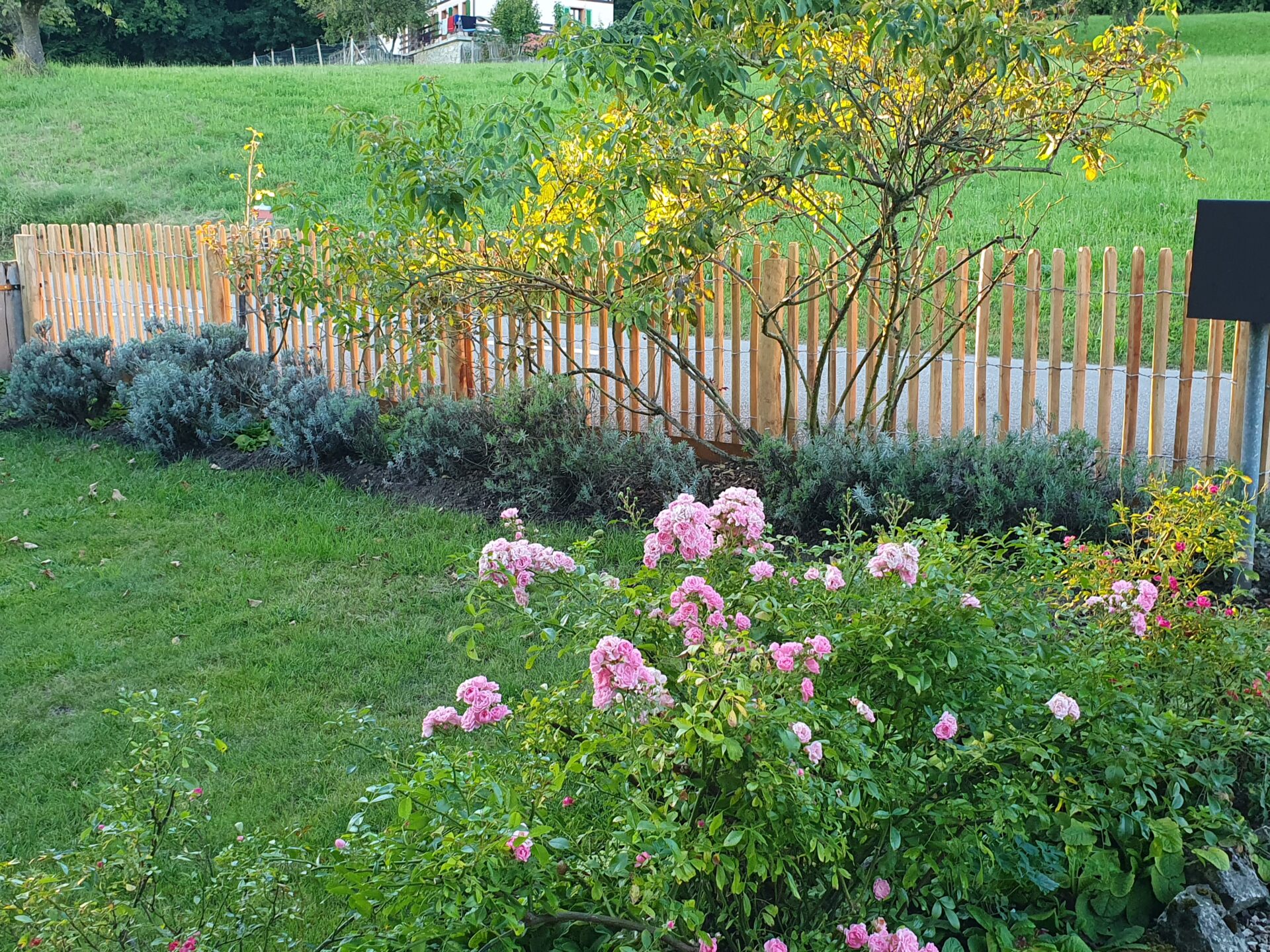 Hier hat unser Kunde am Blumenbeet durch den Zaun eine Grenze zur Wiese geschaffen, auf der Schafe weiden. Schön, oder?
