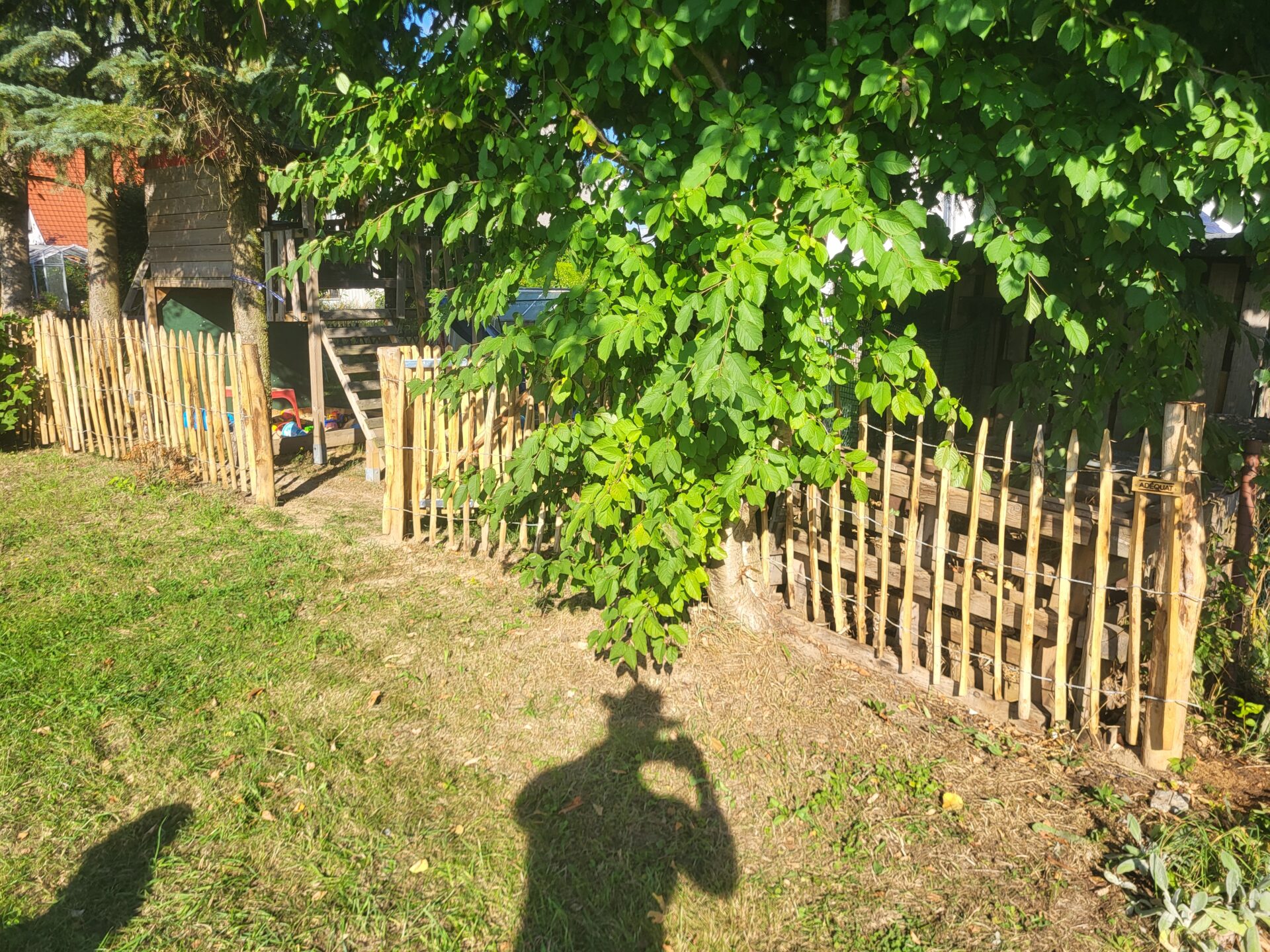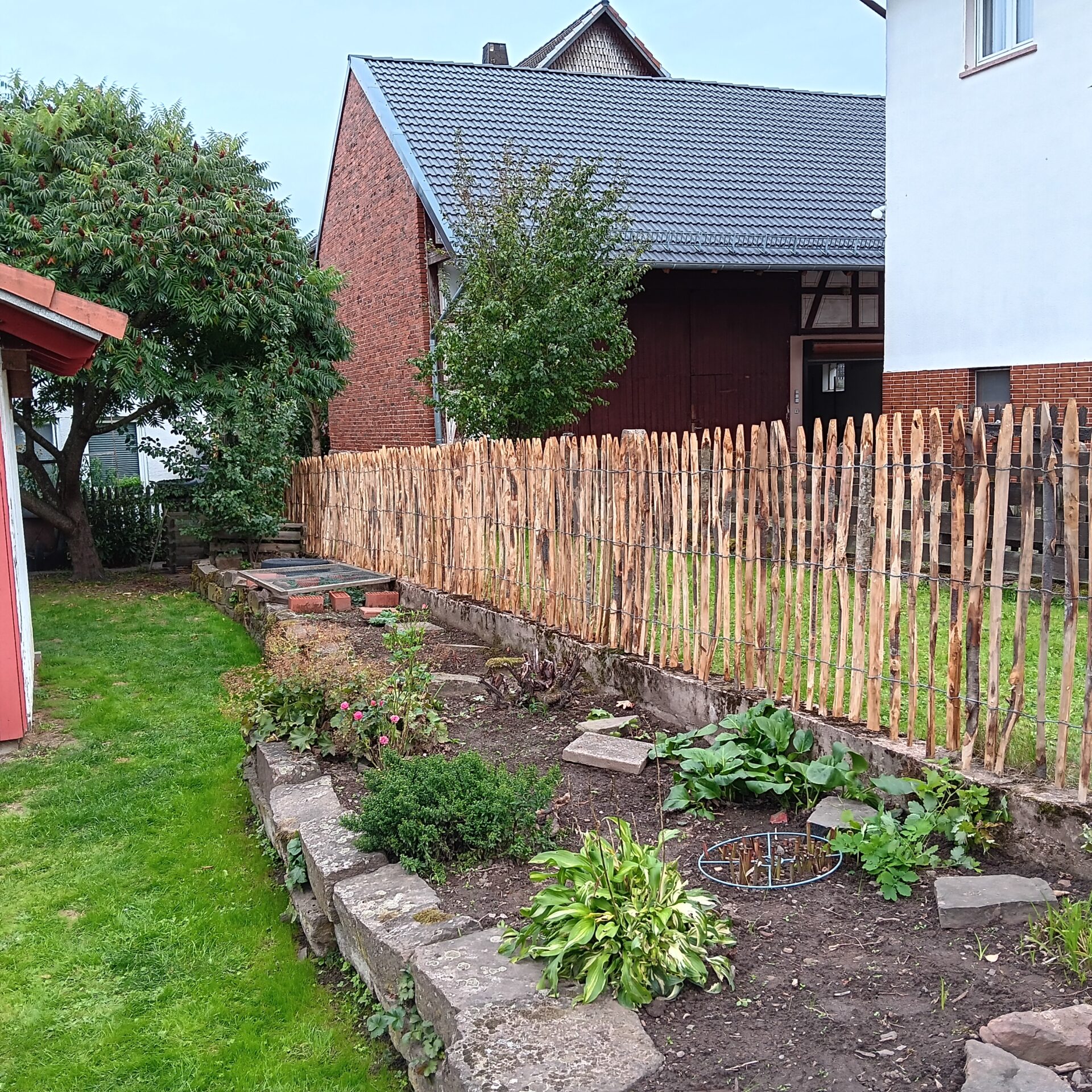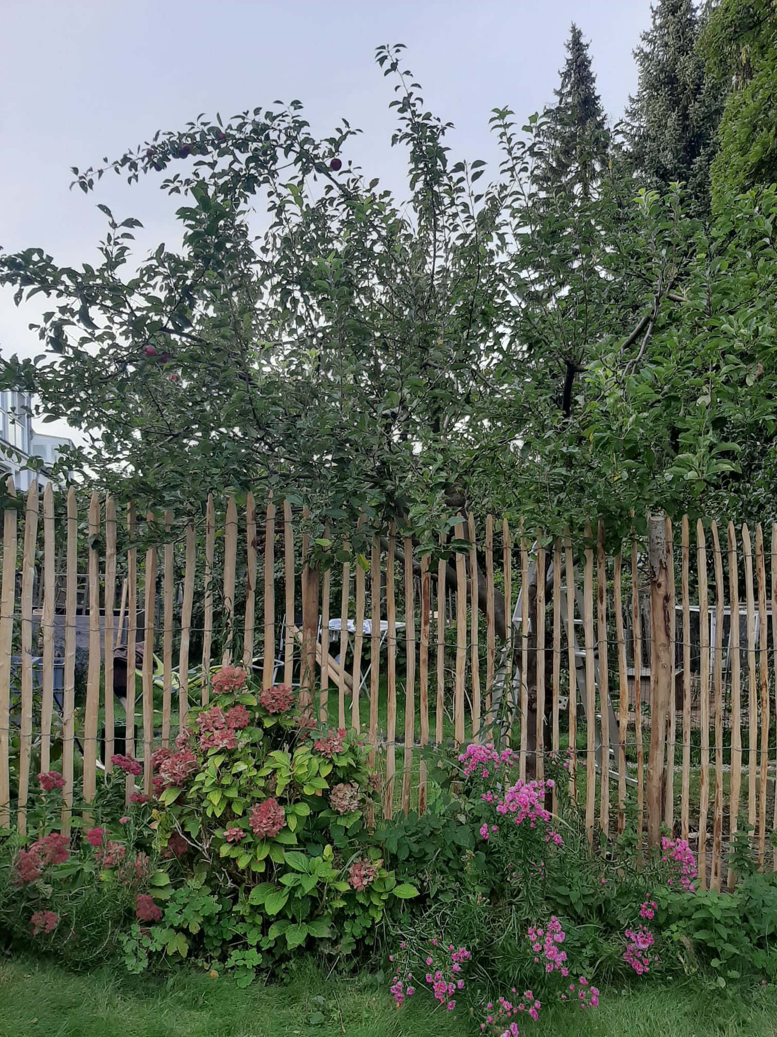 Dieser schöne Staketenzaun hat im Oktober 2023 unseren alten, hässlichen Maschendrahtzaun ersetzt und erfreut uns jetzt in jeder Jahreszeit :-)