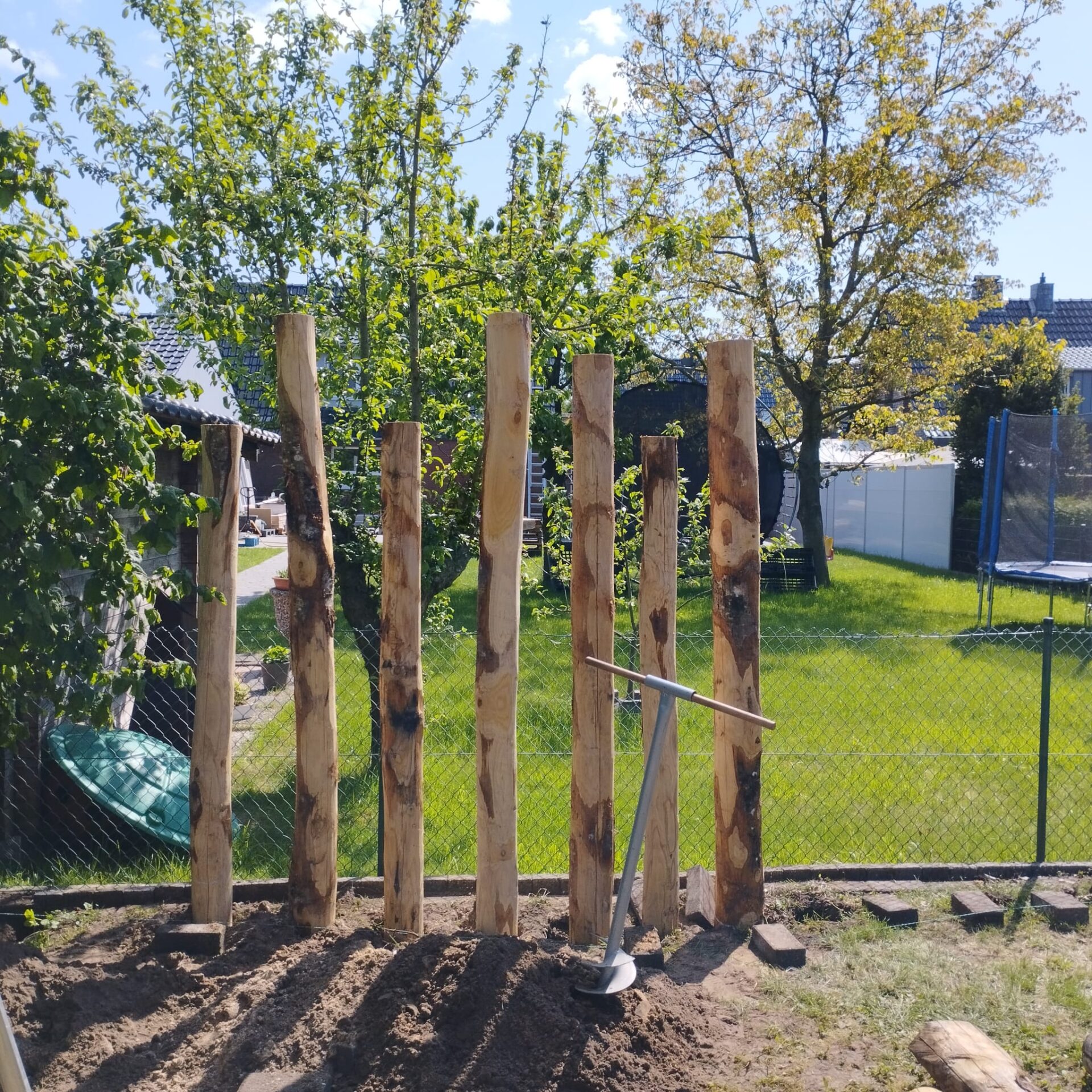 Tipp: Wenn Sie mehr Sichtschutz wünschen, können Sie die Pfähle auch dichter aneinander stellen, sodass eine Palisadenwand entsteht.