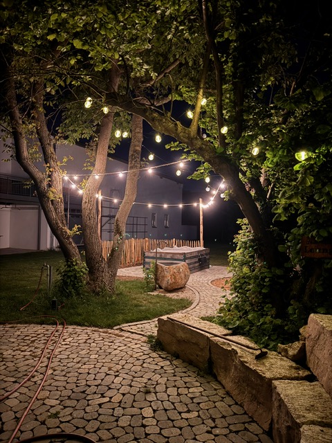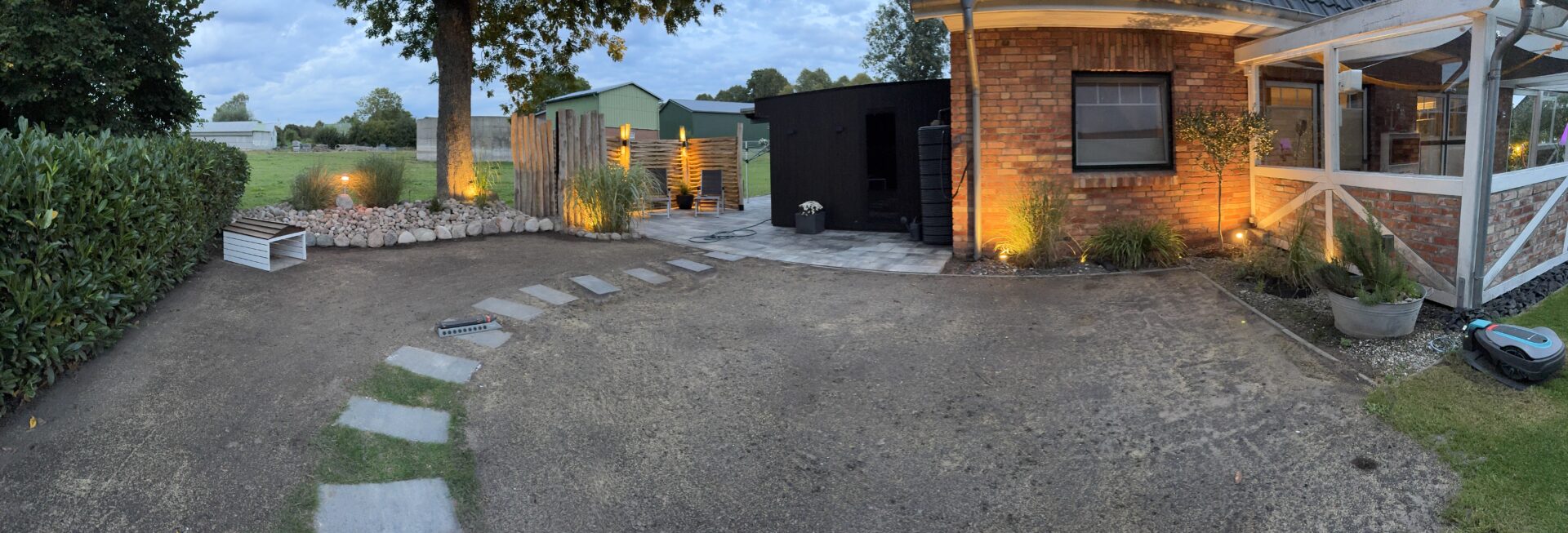 Dennis hat einen Outdoor Wellness-Bereich geschaffen, inkl. Sauna und Außendusche.