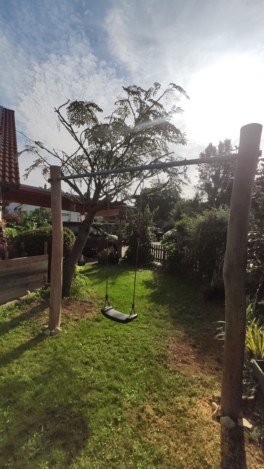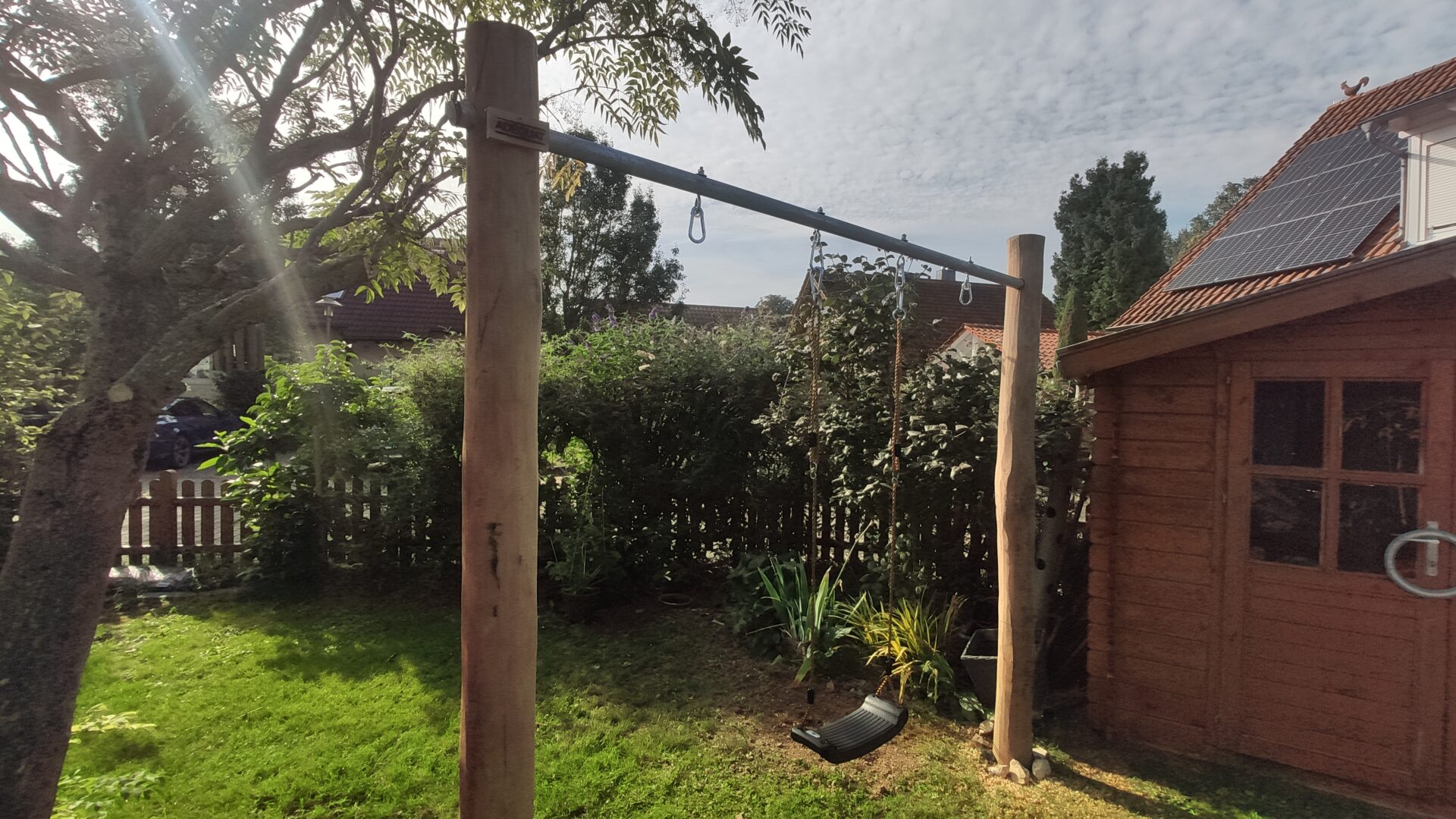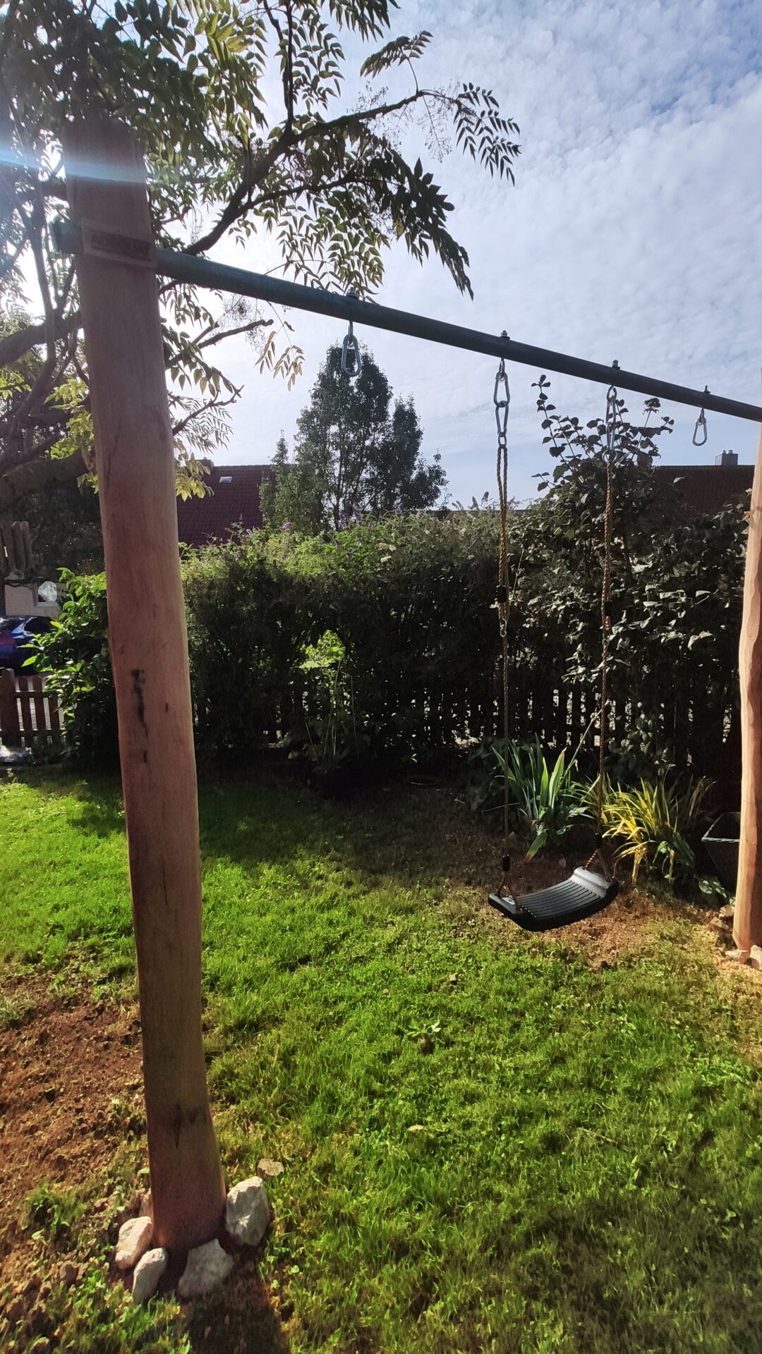 Unser Kunde Michael hat für seinen Sohn eine Doppelschaukel gebaut (momentan ist diese nur als Einzelschaukel im Einsatz) und uns Bilder der Schaukel geschickt (siehe unten). Dafür hat er zwei geschliffenen Robinienstämme verwendet (13-15 cm Durchmesser, 300 cm lang).