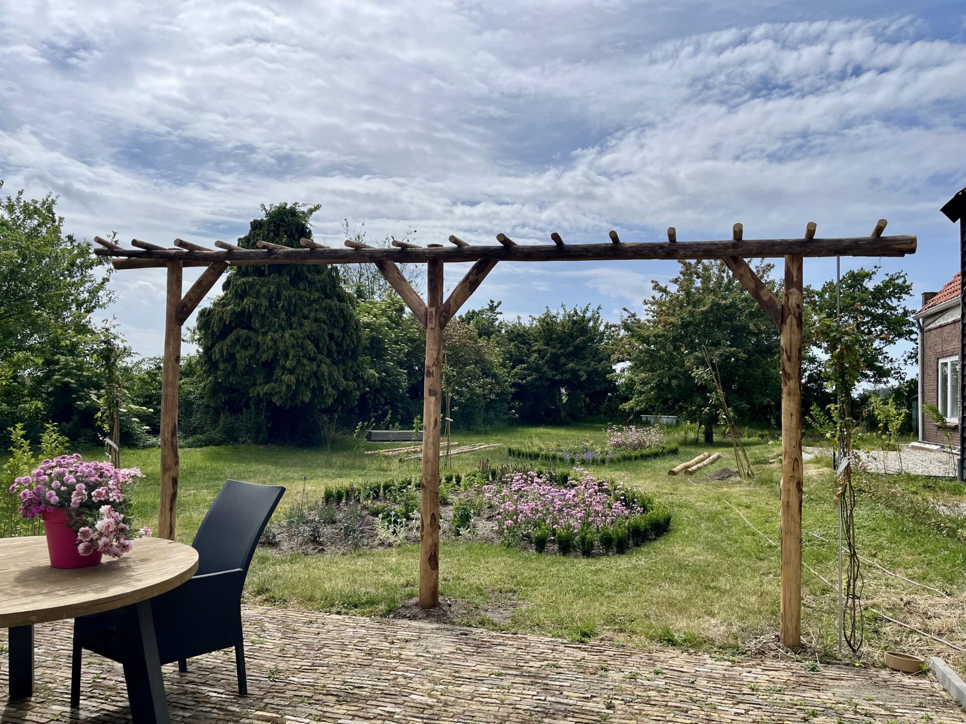 Im Herbst 2023 hat unser Kunde bereits den Rosenbogen errichtet. Noch sieht er etwas kahl aus, aber die Größe des Rankgitters lässt bereits erkennen, wie viele Rosen später daran Halt finden werden. Eine Blütenpracht, wenn man den Garten betritt!