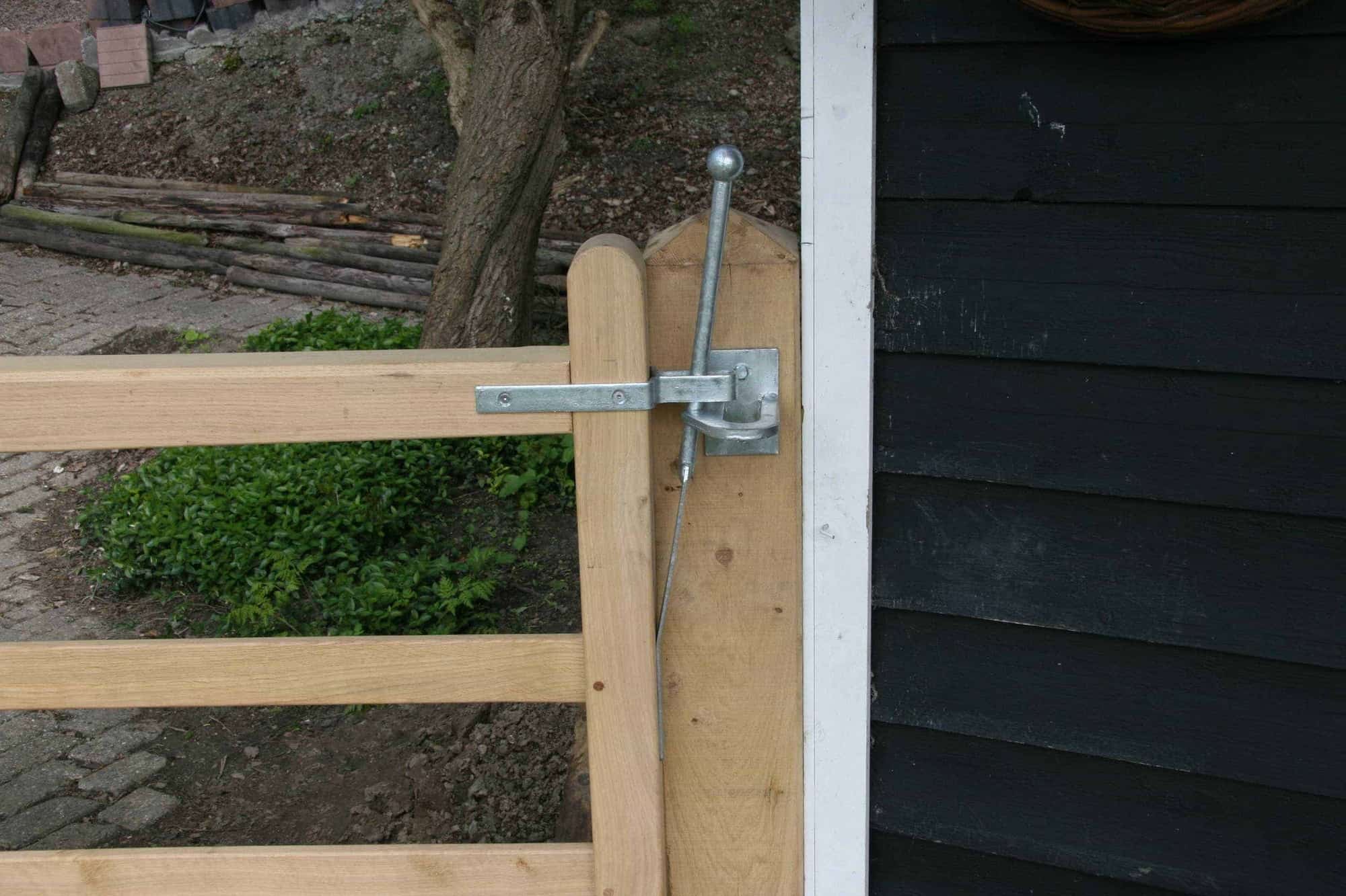 Wenn Sie bei Adéquat ein einflügeliges englisches Tor, niederländisches Tor oder rustikales Hoftor aus Kastanie kaufen, können Sie auswählen, ob Sie auch einen passenden Torverschluss dazu möchten. Wir empfehlen den englischen Torverschluss für diese Holztore.