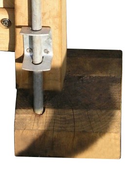 Für ein Doppeltor können Sie entweder zwei schmalere oder einen breiten Bodenblock verwenden (siehe Foto unten), der beiden Torflügel Halt gibt. Der Holzblock wird im Boden eingegraben damit er dauerhaft Stabilität bietet.