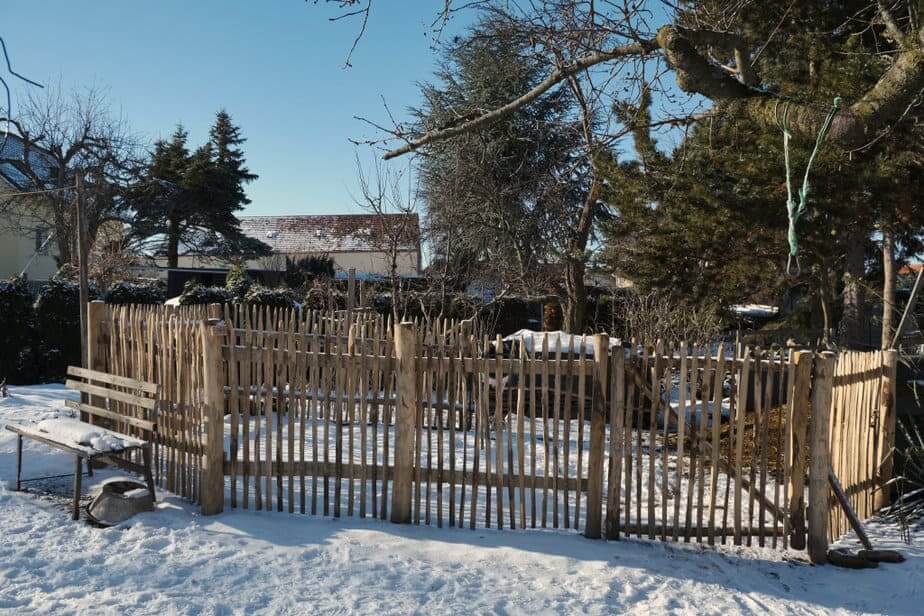 Kastanienpfähle und Staketenzaun Kastanie vor der Haustür