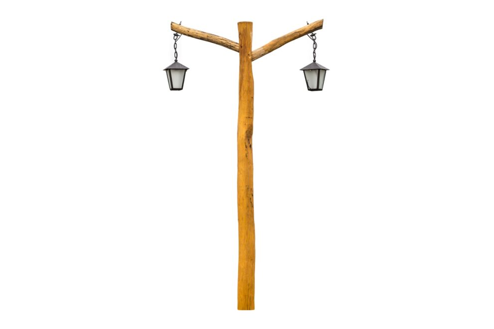Lampadaire en bois avec lanterne suspendue à deux bras – Philip