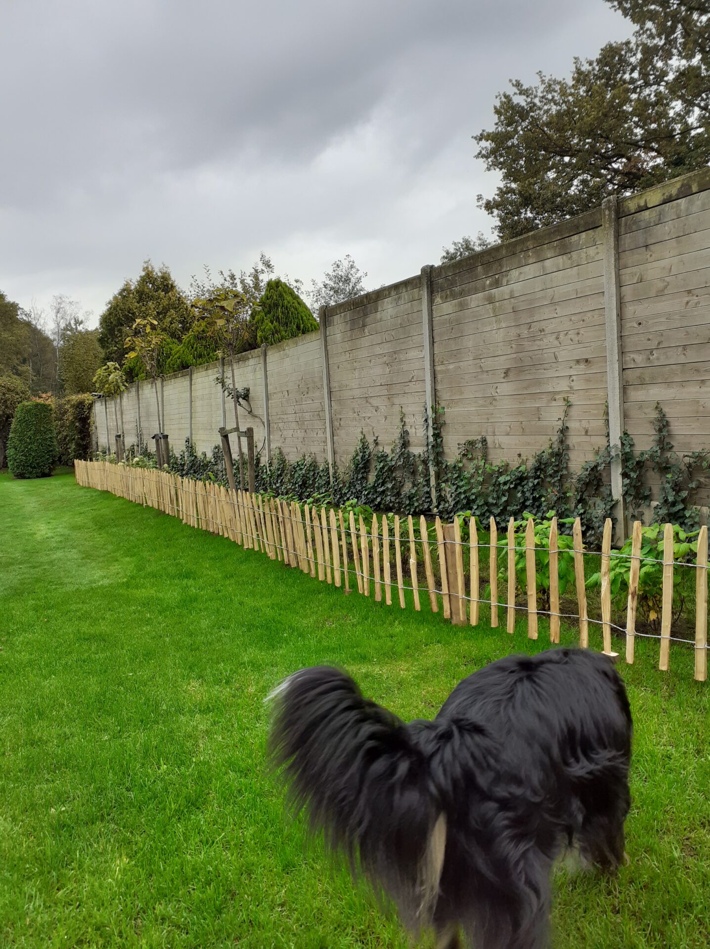 Een andere inzending die erg onze aandacht trok, is een viervoeter. Wat schattig hoe deze hond mooi poseert voor het Franse schapenhek. Dit kastanje schapenhek is 80 centimeter hoog en heeft een latafstand van 10 centimeter. Daarnaast is er ook gebruik gemaakt van kastanje palen met een lengte van 120 centimeter en een diameter van 7-9 centimeter. Een grote latafstand is ideaal wanneer u nog goed door het hekwerk heen wilt kunnen kijken, zoals te zien is bij deze klant.