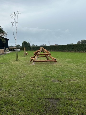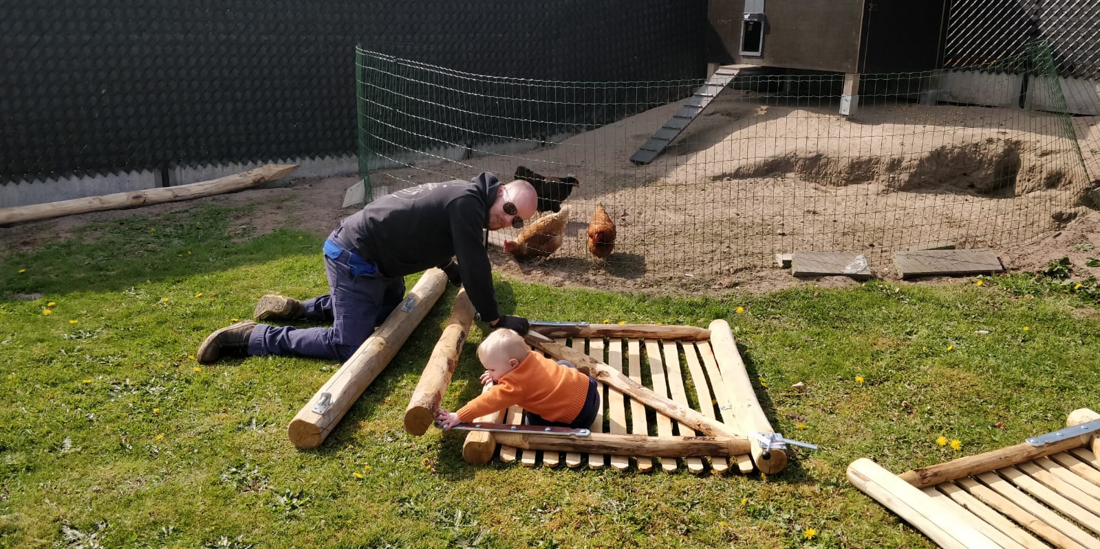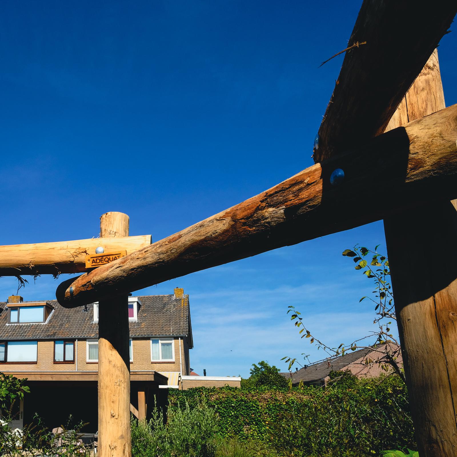 Maar er werd niet alleen een schommelfoto ingestuurd. Deze maand zagen wij weer een nieuwe manier om houten palen te gebruiken voor een speeltoestel. Schommels, speelhuisjes, boomhutten, duikelrekken etc. zien we vaker, maar dit is de eerste keer. Wat wij hier zo bijzonder aan vinden is de puurheid van het speeltoestel. Er zijn namelijk geen andere elementen aan toegevoegd, het zijn enkel de houten palen die het geheel vormen. Deze klant heeft voor dit project robinia palen van 400 cm lang, met een diameter van 10/12 en een diameter van 16/18 centimeter, gebruikt. De palen zijn geschuurd, dus de kans op splinters is een stuk kleiner. Dat is altijd aan te raden wanneer het om speeltoestellen voor kinderen gaat! Het is te zien dat er met alleen houten palen veel mogelijk is. Wij zijn er van overtuigd dat er nog talloze mogelijkheden zijn om originele speeltoestellen te maken van houten palen. Ga jij hiermee experimenteren? Voor tips kun je onze blog lezen die wij hierover hebben geschreven. Enne… stuur ons vooral een foto van het eindresultaat!