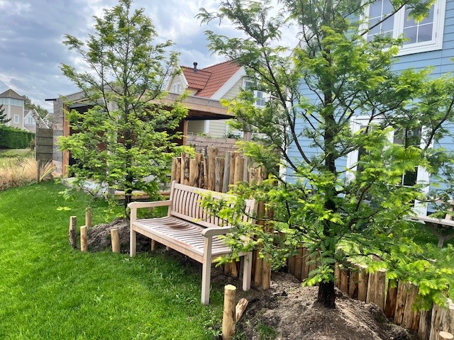 Een ander project dat ons op is gevallen, heeft te maken met ultieme ontspanning in de natuur. Dankzij de pergola is deze hottub heerlijk beschermd. De pergola is gemaakt van robinia palen van 200 centimeter lang, met een diameter van 8-10 centimeter (geschild en gepunt), robinia palen van 400 centimeter lang, met een diameter van 10-12 centimeter (geschild en gepunt), robinia palen van 400 centimeter lang, met een diameter van 12-14 centimeter (geschild en ongepunt) en robinia palen van 500 centimeter lang, met een diameter van 12-14 centimeter (geschild en ongepunt).