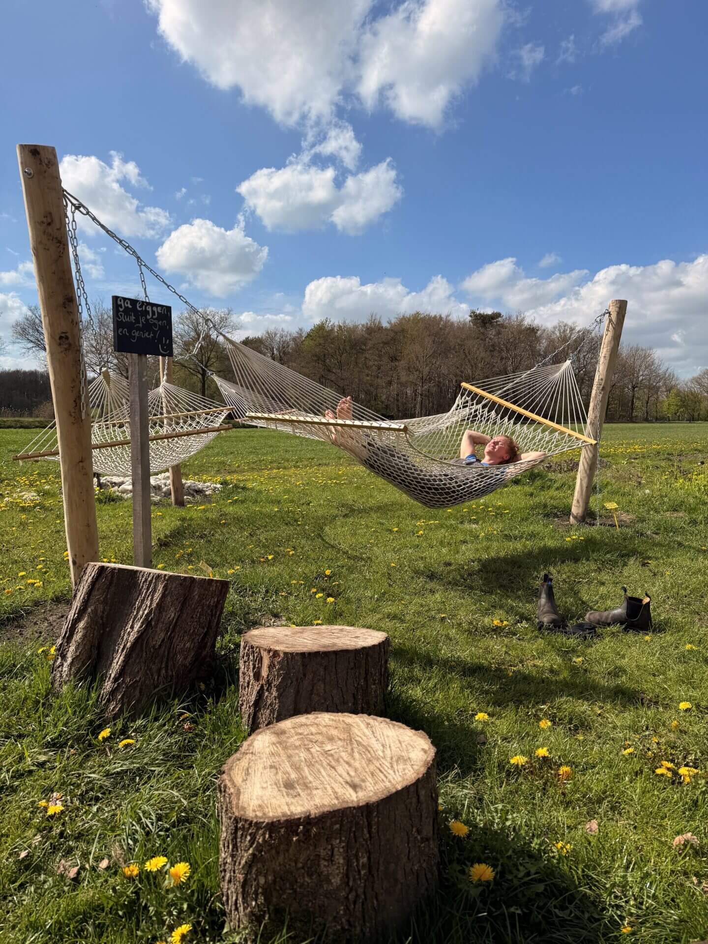 Soms krijgen we de vraag of het nodig is om houten palen voor een hangmat in beton te storten. Het korte antwoord: dat is meestal niet nodig, zolang de palen diep genoeg de grond in gaan en de bodem stevig is.