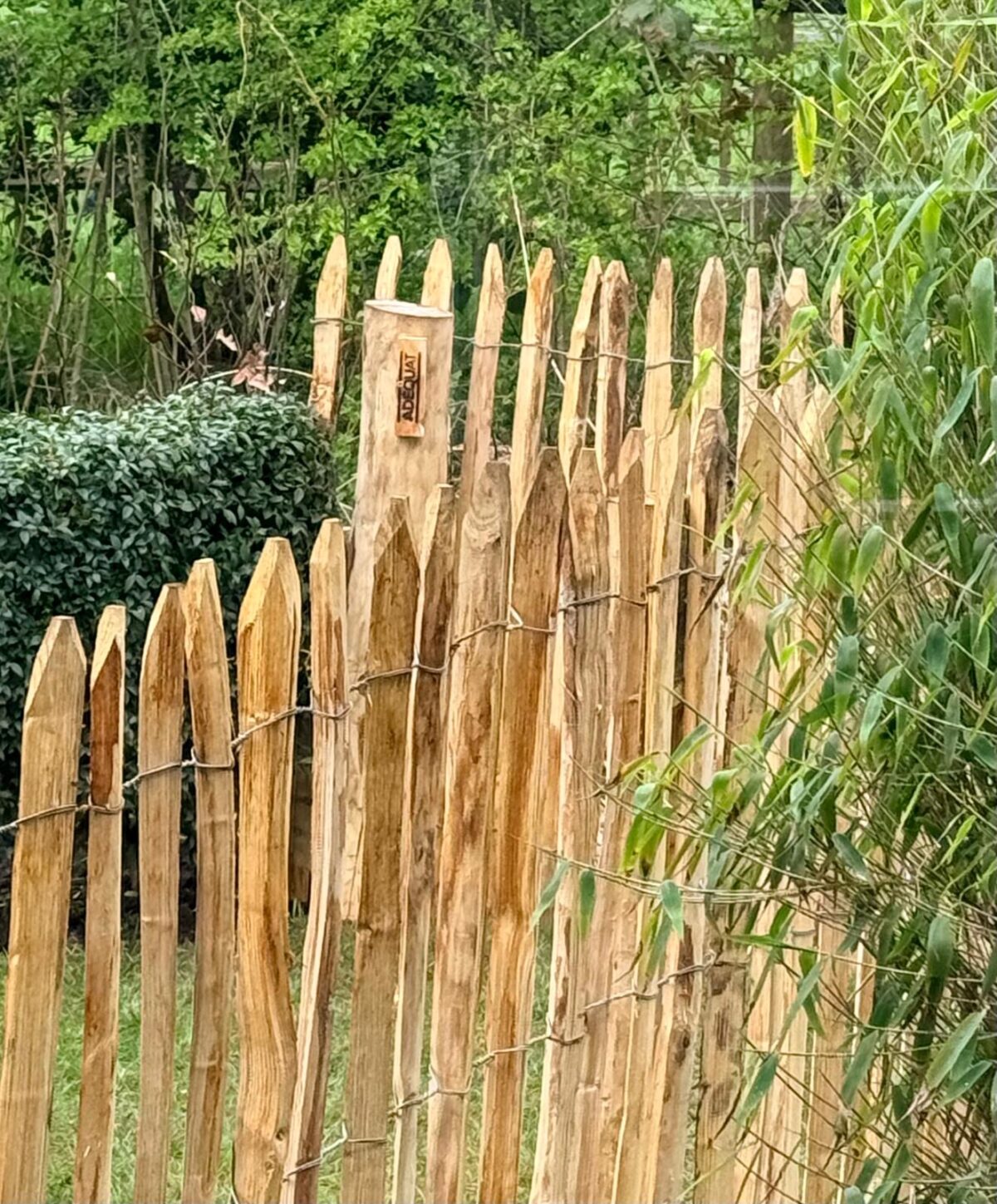 - U heeft bij deze hoogtemaat de keuze uit verschillende latafstanden. Hiermee bedoelen we de afstand tussen de latjes van het hekwerk, gemeten vanaf de eerste wikkeling van het ijzerdraad tot de laatste wikkeling. De ruimte tussen twee latten zal dus altijd wat groter zijn (ongeveer 1,5 tot 2 cm groter dan de aangegeven latafstand). Aangezien het om natuurlijk gevormde latjes gaat, zal de latafstand niet altijd precies hetzelfde zijn.