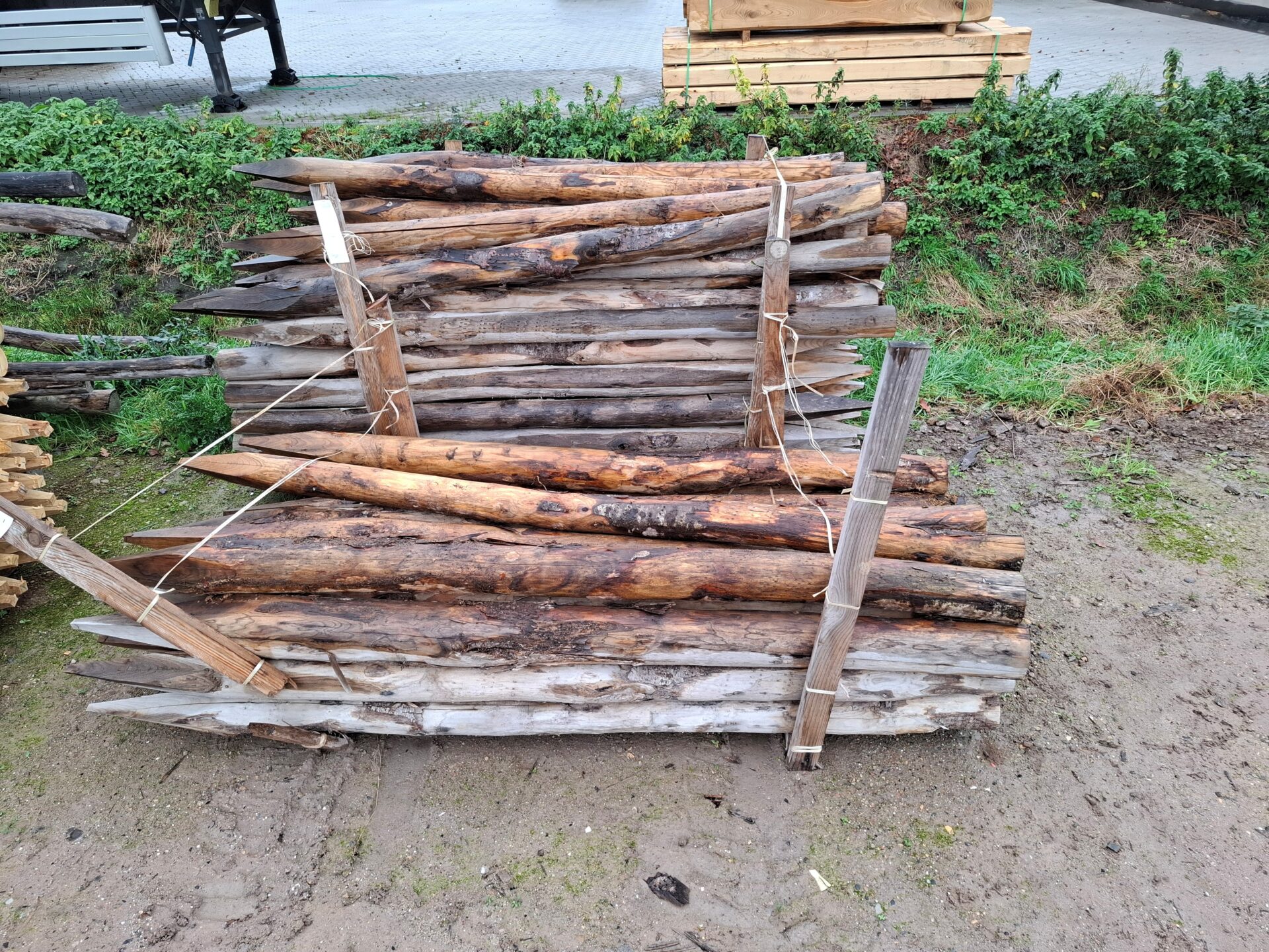 kastanje palen – 225 cm lang – diameter 9/12 cm gepunt! – prijs per stuk