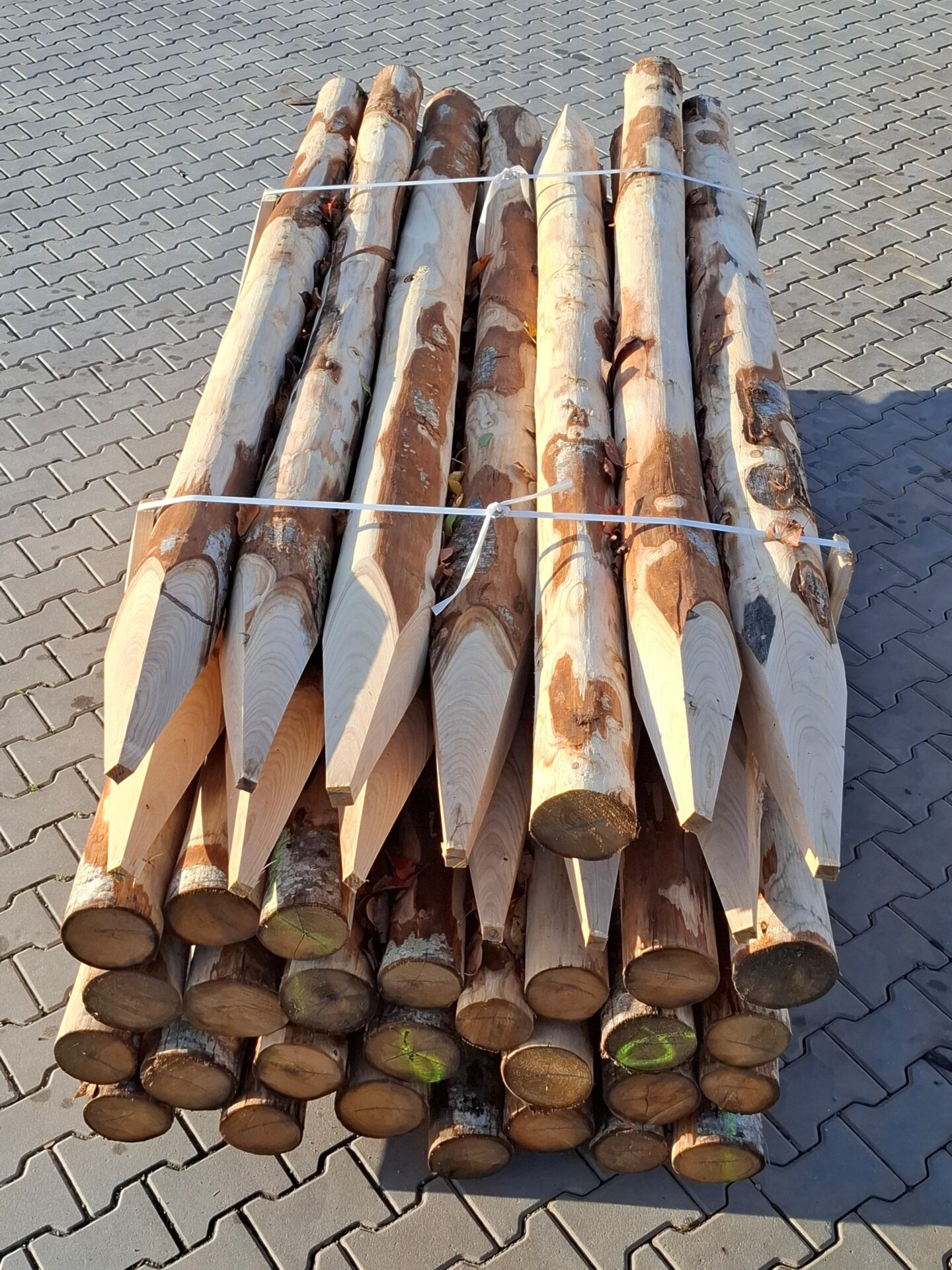 kastanje palen – 250 cm lang – diameter 13/15 cm gepunt! – prijs per stuk.