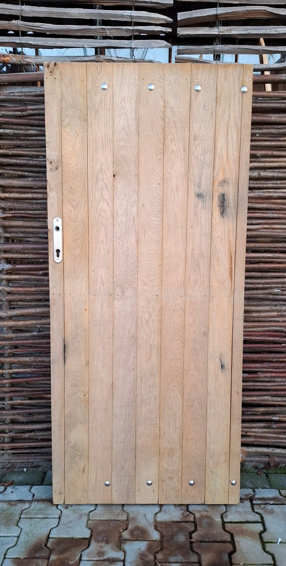 Nr 1 Poortdeur Eiken enkel, 180 cm hoog & 81 cm breed. Inclusief RVS slot en deurklink