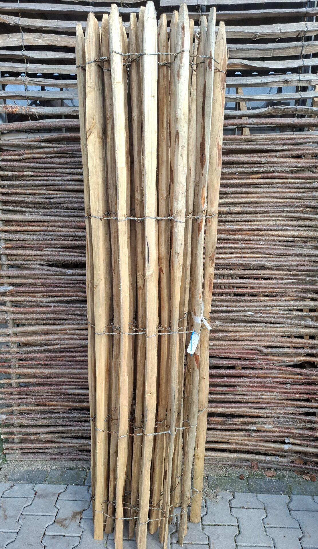 Nr 183 Frans Schapenhek kastanje 200 cm hoog, latafstand 6 cm. Lengte 420 cm