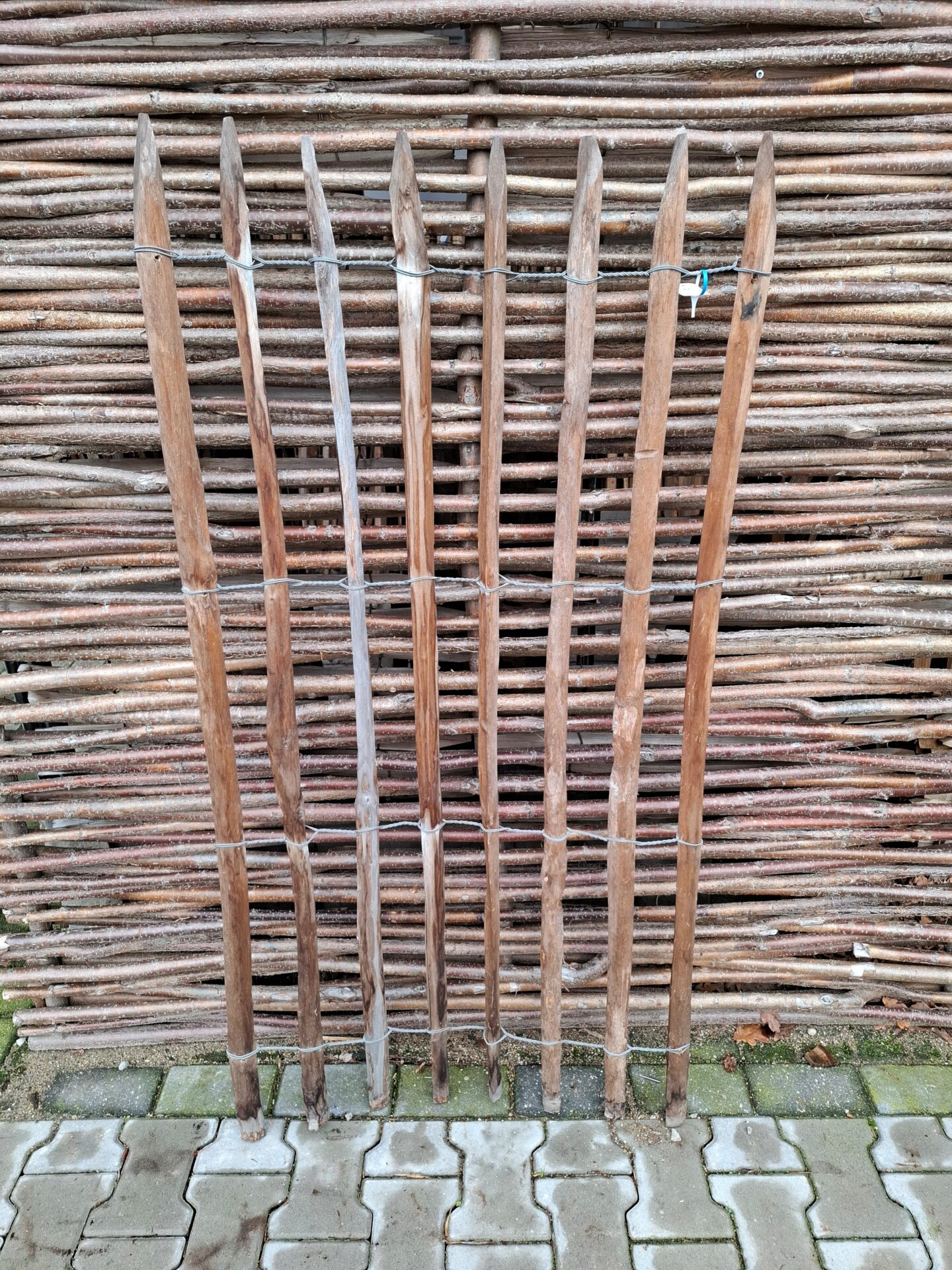• Nr 199 Frans Schapenhekwerk kastanje 150 cm hoog, latafstand 6 cm. Lengte 75 cm.