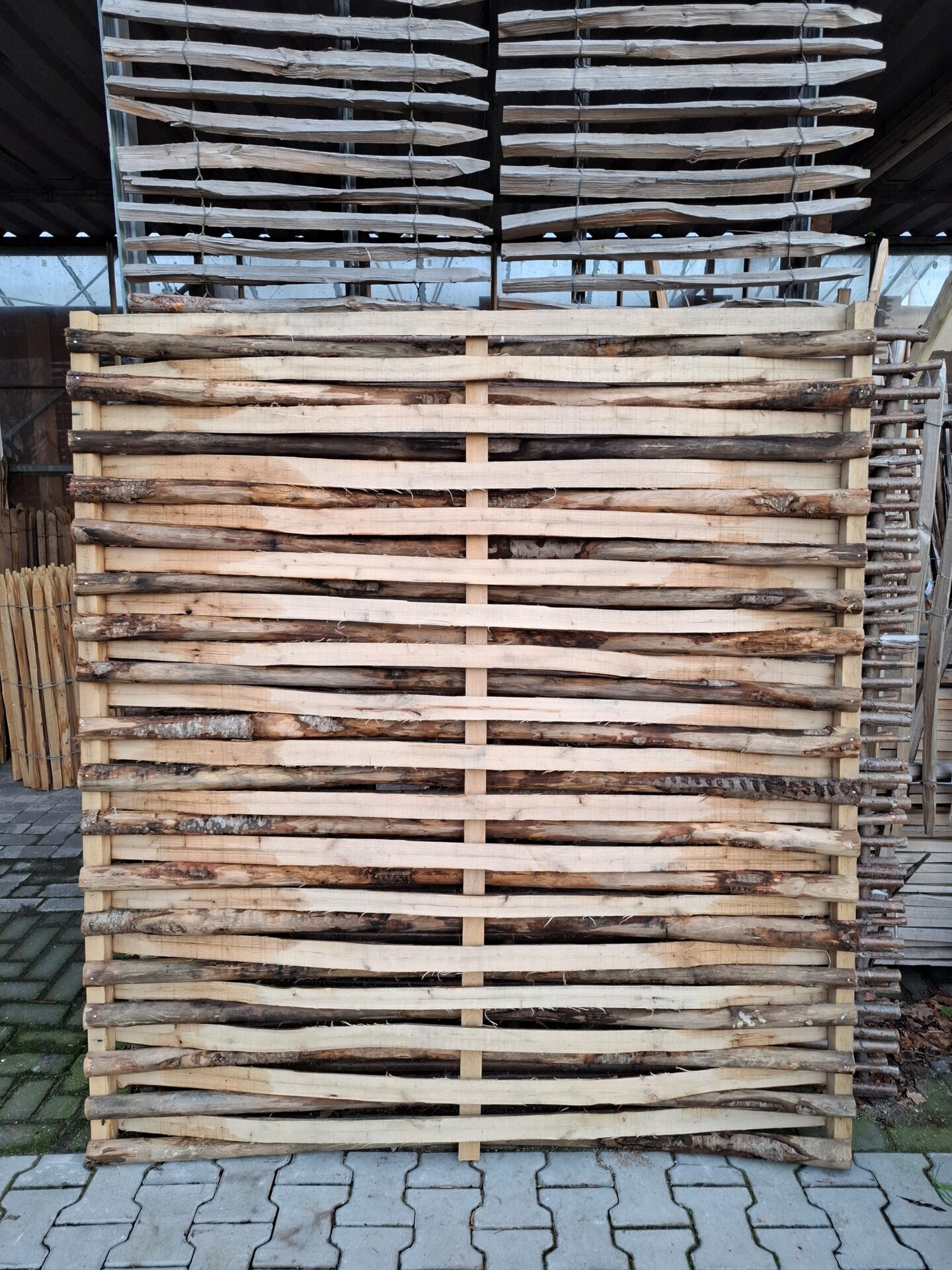 Nr 222 Vlechtschermen kastanje (7 stuks) 180 cm hoog, lengte 165 cm.