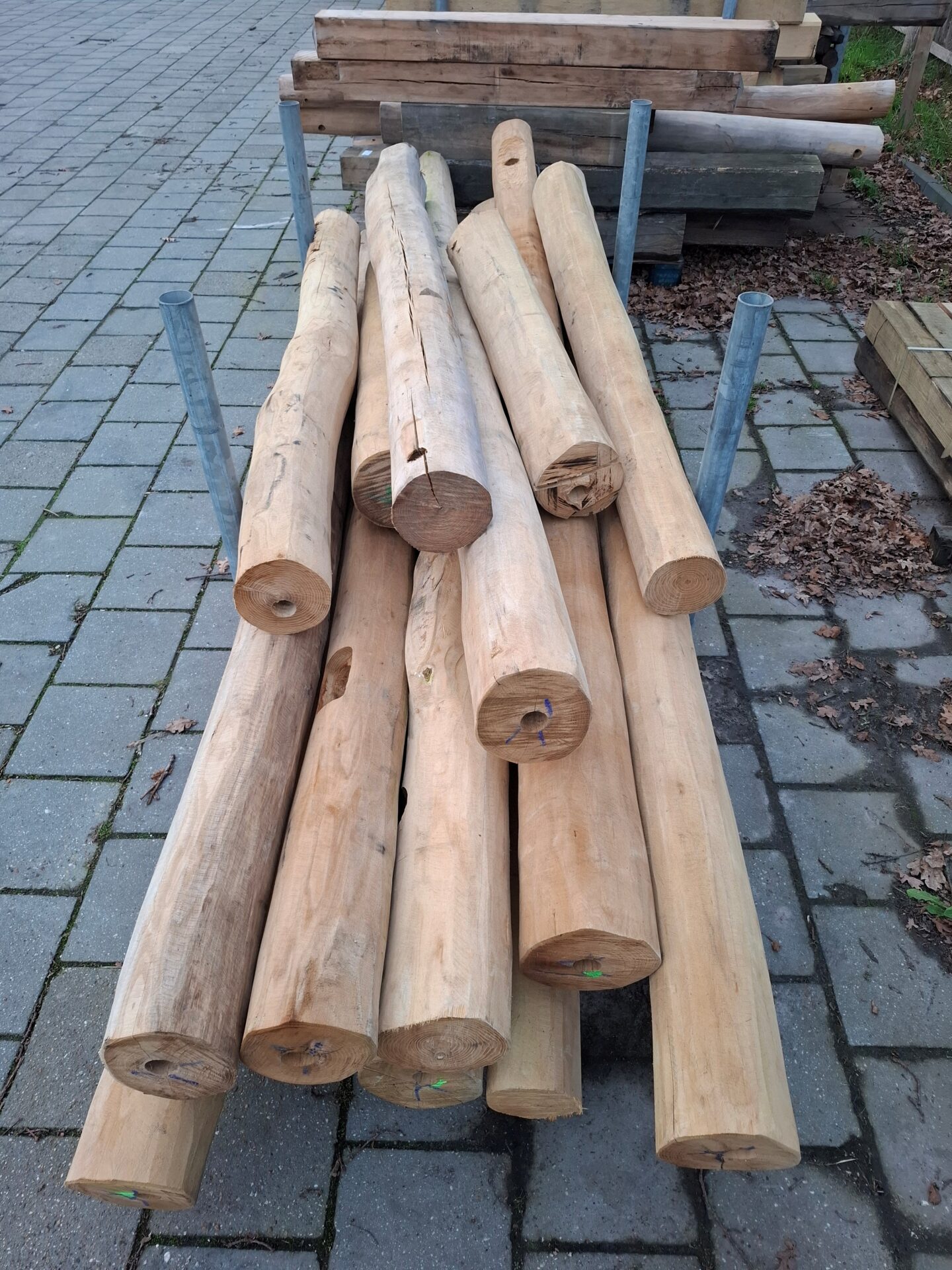 Robinia palen, diverse lengtes. Diameter 13/17 cm. Geschuurd.