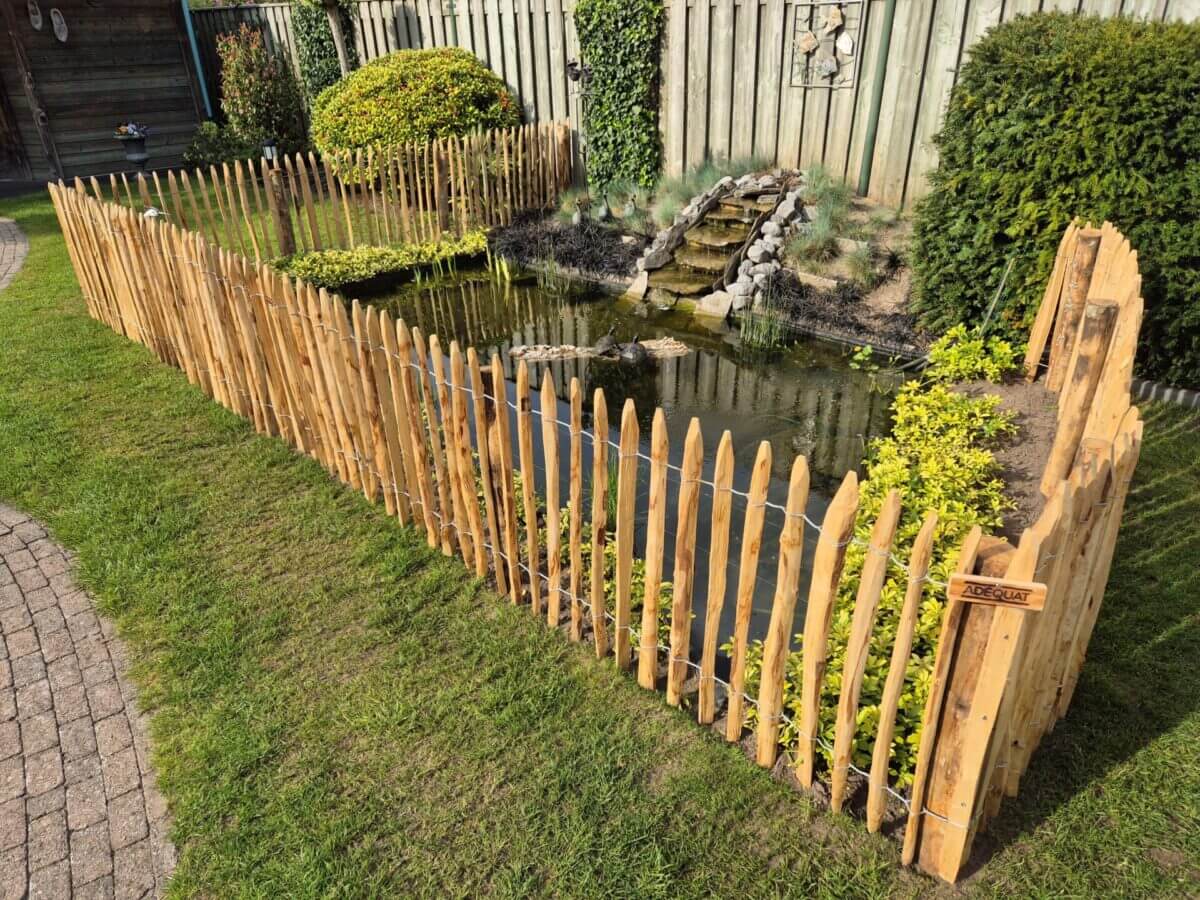 Al jaren hebben wij een vijver met goudvissen en schildpadden. Nu de kleinkinderen bij opa en oma komen moest er voor de veiligheid een hek om de vijver gemaakt worden. Er is gekozen voor een natuurlijk schapenhek van Adequat.