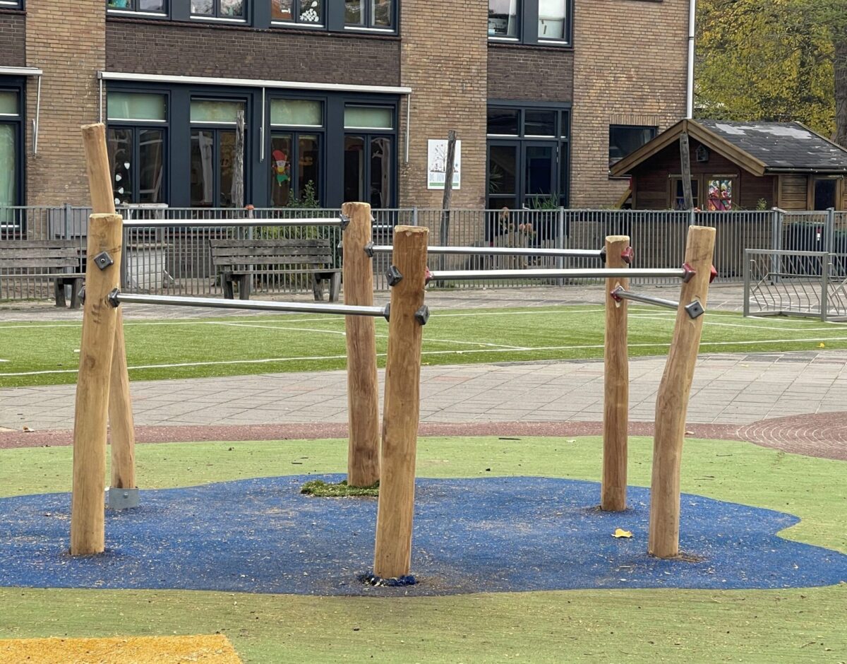 Klantenservice adviseerde om deze houten palen te gebruiken i.p.v. rechte.