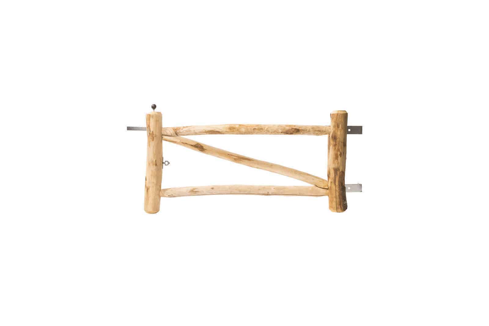 • De poort wordt geleverd inclusief twee poortpalen (kastanje paal Ø 10/12 150 cm) en hang- en sluitwerk.