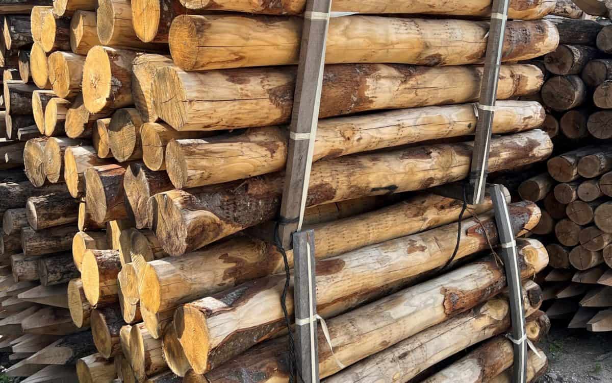 Robinia geschild & geschuurd 13/15 diverse lengtes tussen 300 en 600cm