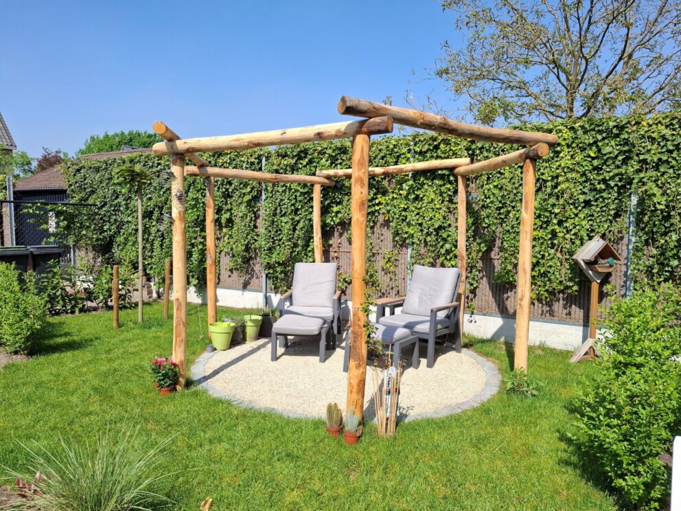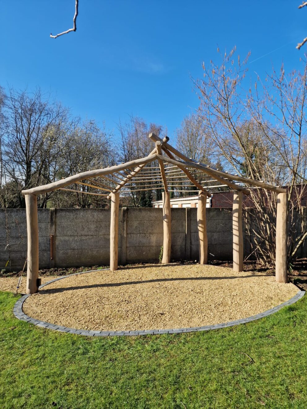 In dit artikel vindt u inspiratie, handige tips en voorbeelden van klanten die een ronde pergola bouwden met onze kastanje- en robiniapalen.