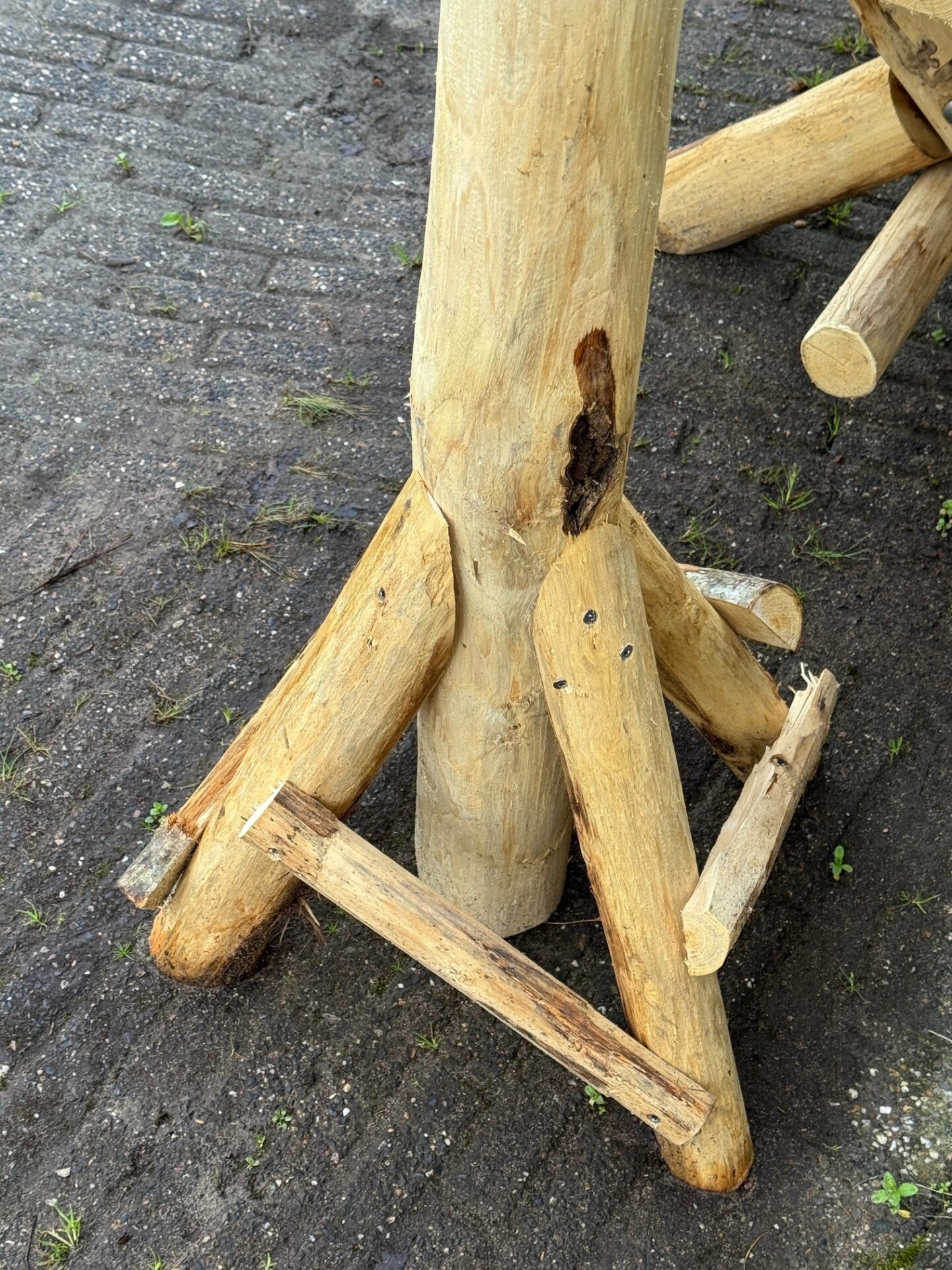 De paal waarop het voederhuis rust, is het beste van kastanjehout, maar bij een vochtig blijvende grond is robinia ook een zeer geschikte keuze.
