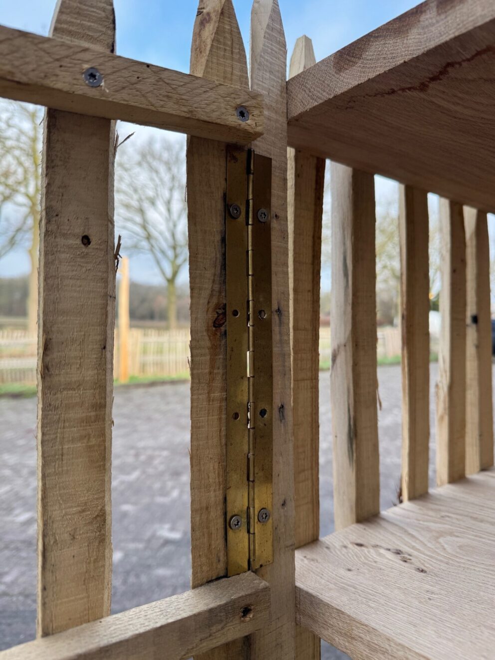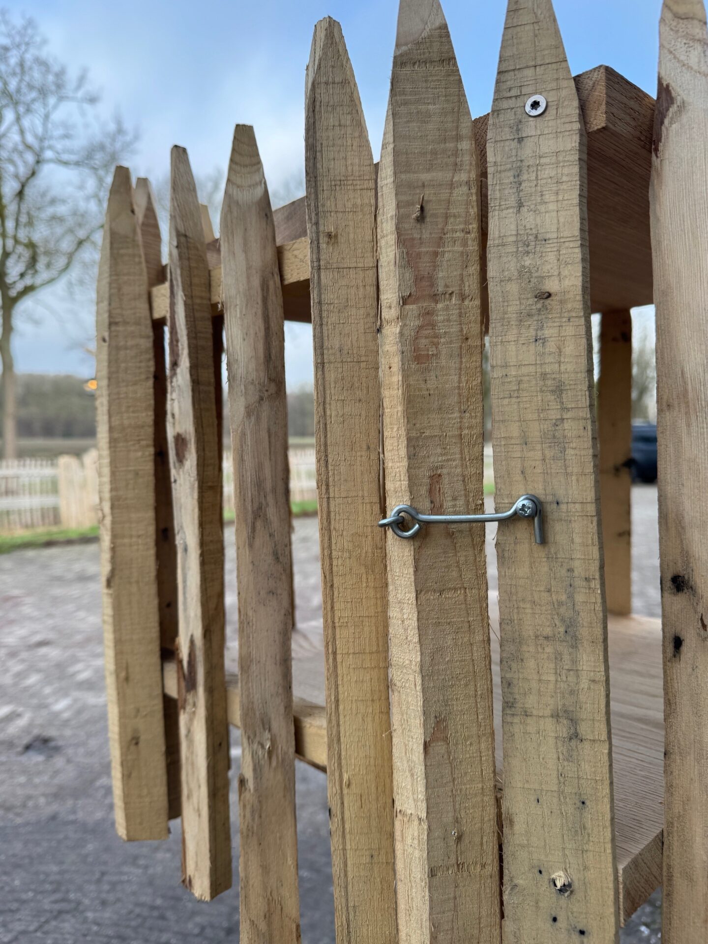- Spijlen: kastanjehouten rasterlatten of een stukje overgebleven kastanjehouten schapenhek uit een eerder project
