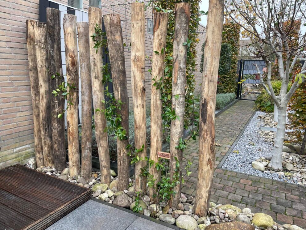 - Losse houten palen: kastanje- of robiniapalen zijn stevig, robuust en perfect als klimsteun voor diverse leiplanten.