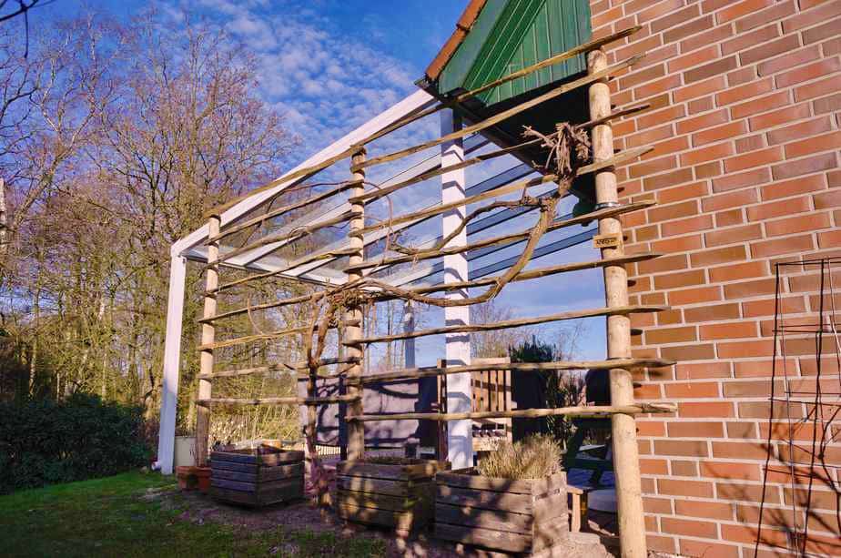 Door achter de palen een stuk gaas te plaatsen, creëert u een stabiele constructie waar rankende klimplanten zich aan kunnen hechten en uitgroeien tot een weelderig groen scherm