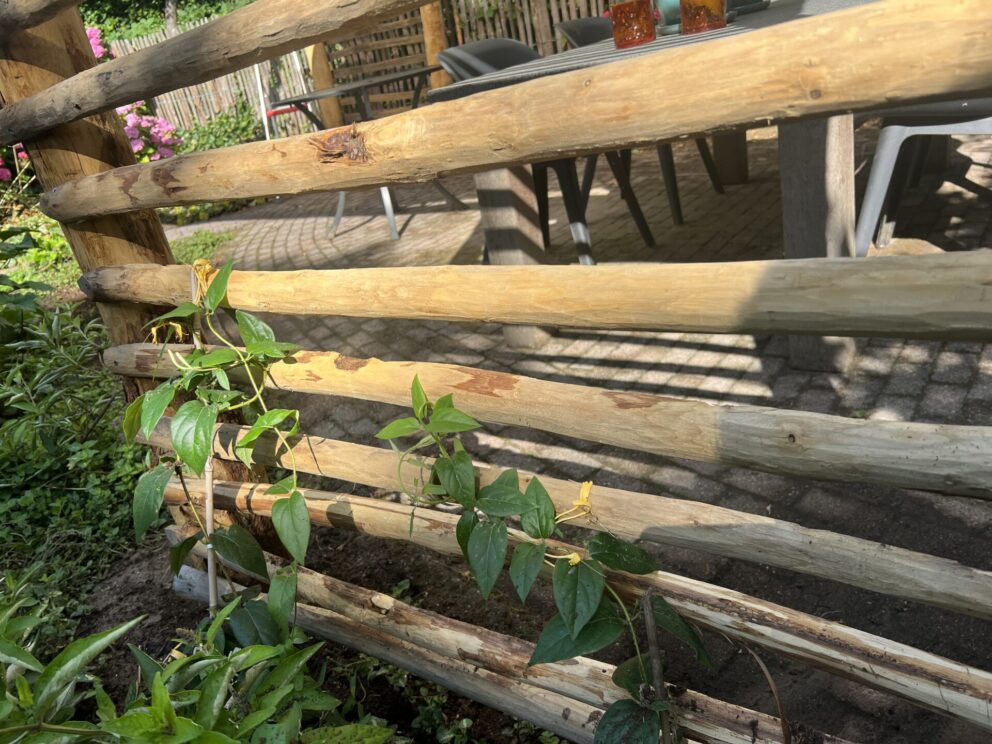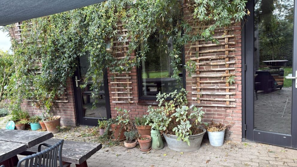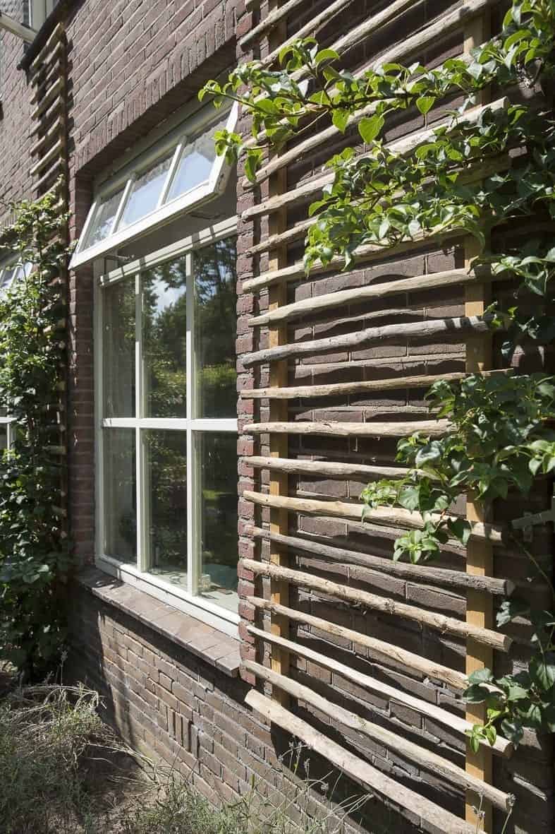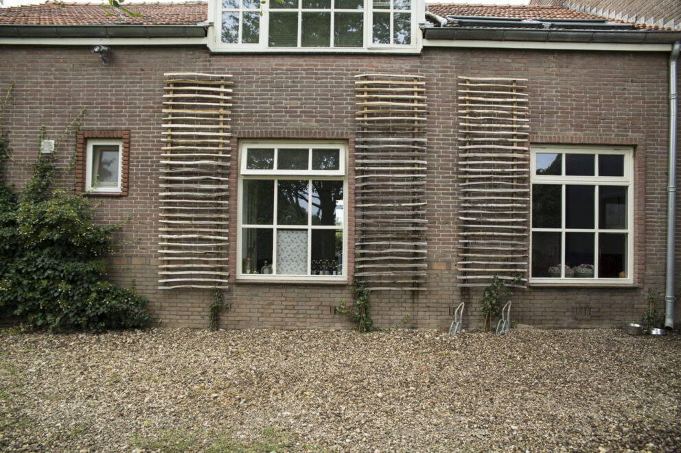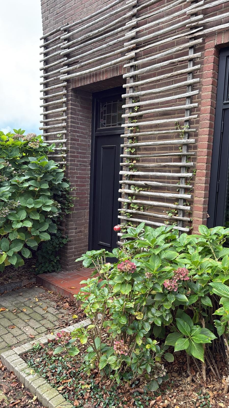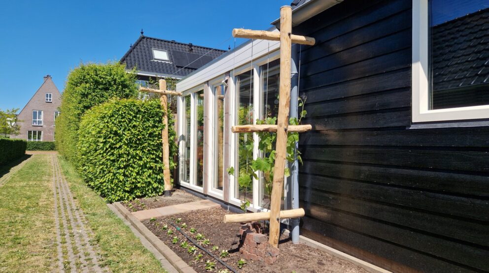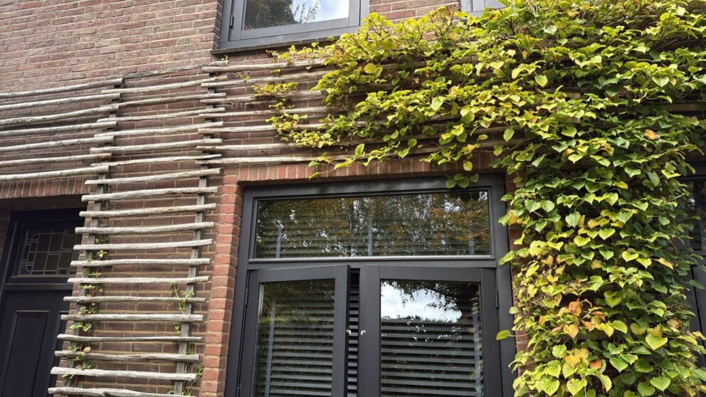 Wilt u uw gevel liever wat ontzien? Dan kunt u, net als onze klanten hieronder dat deden, kastanjehouten klimrekken tegen de gevels maken. Daarmee krijgen de klimplanten iets om zich aan vast te houden, zonder zich volledig aan uw gevel te hechten. Zo geniet u van hetzelfde groene effect, maar met extra bescherming voor uw muur; de ideale combinatie van praktisch en mooi!