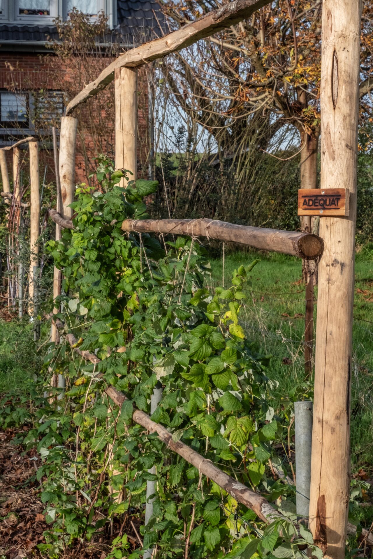 - Hop (Humulus lupus): een sterke, meerjarige klimplant die zorgt voor een weelderig groen effect en opvallende, lichtgroene kegeltjesbloemen.
