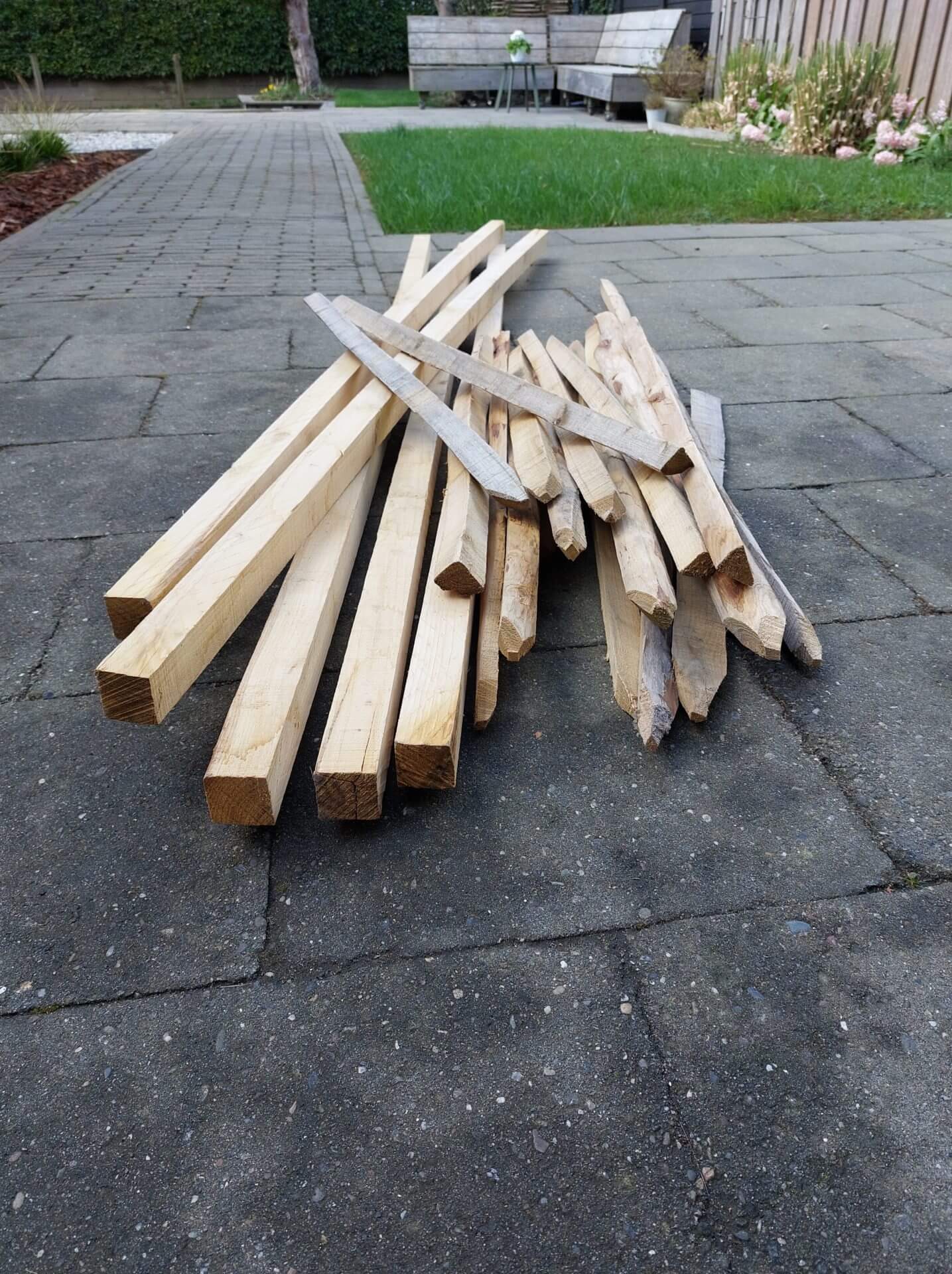 - Losse houten palen: kastanje- of robiniapalen zijn stevig, robuust en perfect als klimsteun voor diverse leiplanten.